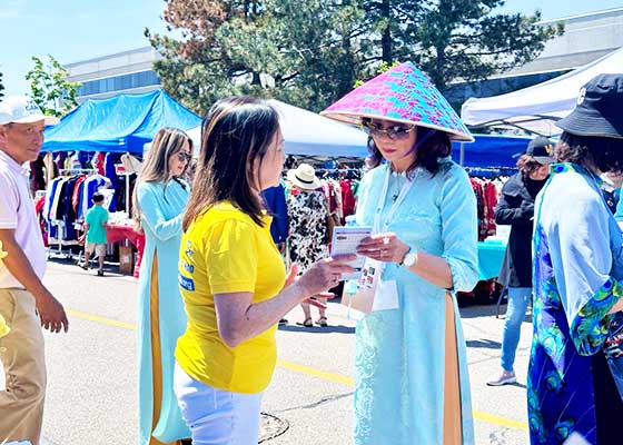 五月二十六日,多伦多法轮功学员参加了在密西沙加市举办的西贡公园两周年庆祝活动,并设立展位向民众介绍法轮大法的美好。