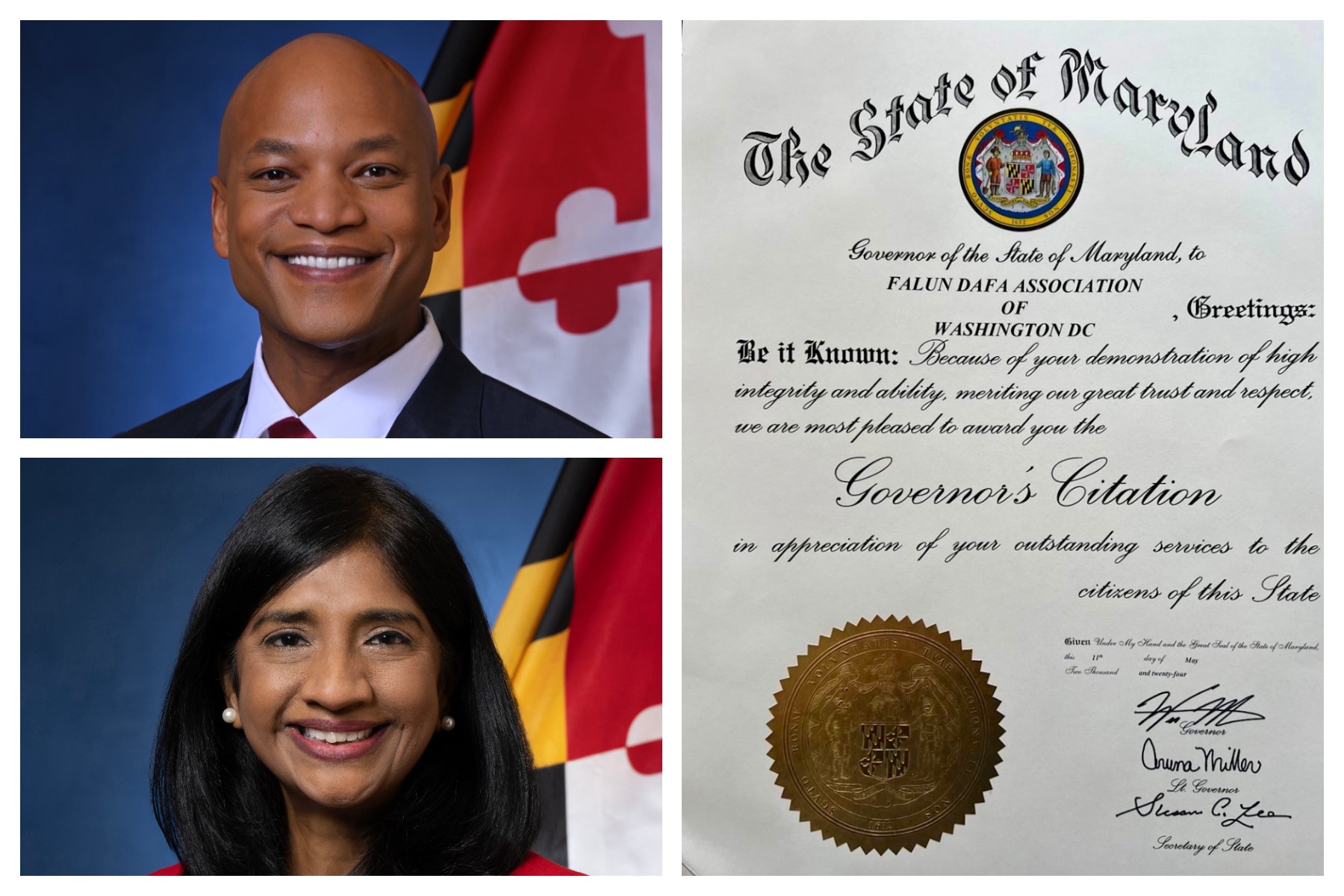 美国马里兰州州长韦斯·摩尔(Wes Moore)向华盛顿DC法轮大法学会颁发州长嘉奖令。摩尔州长说:“因为你们展现了高度的诚信和能力,赢得了我们极大的信任和尊重,我们非常高兴地授予你们州长嘉奖令,感谢你们为本州公民所作出的杰出服务。”