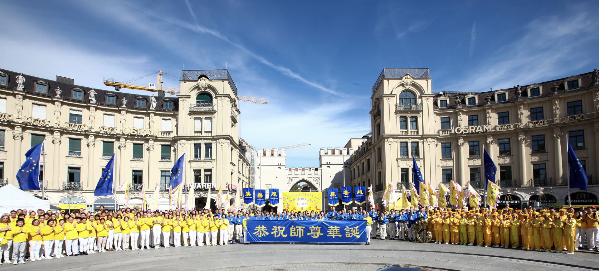 ![]() 图1:二零二四年五月十一日在德国巴伐利亚州首府慕尼黑,来自德国各地、奥地利、瑞士与部分欧洲其他国家的大法弟子恭祝师尊华诞暨世界法轮大法日。 |