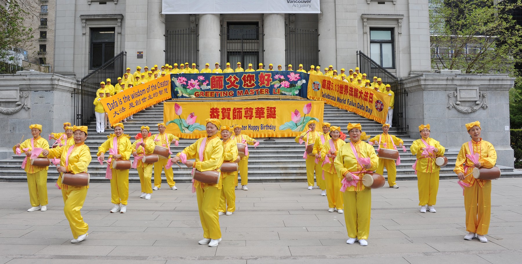 ![]() 图1:温哥华法轮功学员在市中心艺术馆南侧广场,庆祝5.13世界法轮大法日,并恭贺法轮功创始人李洪志大师华诞。 |