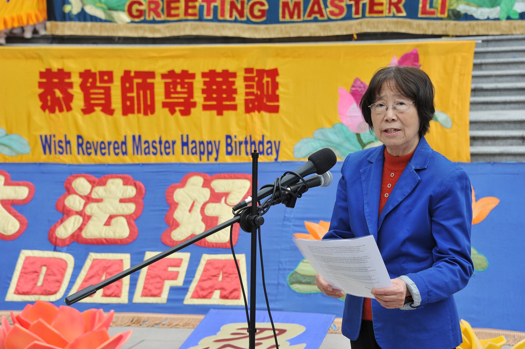 ![]() 图4:温哥华法轮大法学会发言人张素在庆典活动上致辞。 |