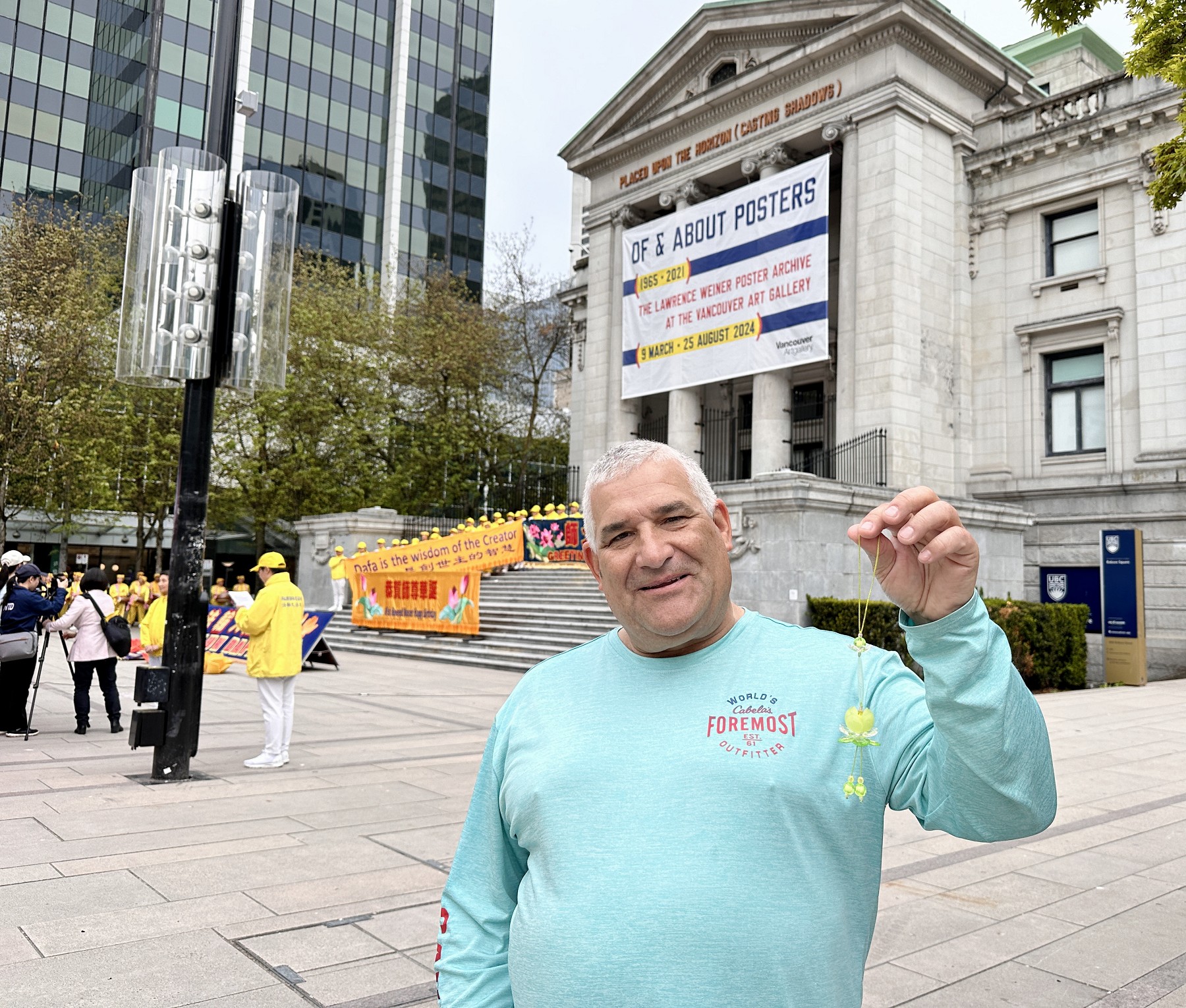 来温哥华旅游的墨西哥人劳尔(Raul),当天他从温哥华艺术馆前经过时,看到法轮功学员举办的庆祝活动,他说:“我很惊讶。首先,我没想到会在这里看到融入中国文化的表演。感到这里非常美,非常神奇,也让人感到非常宁静。”