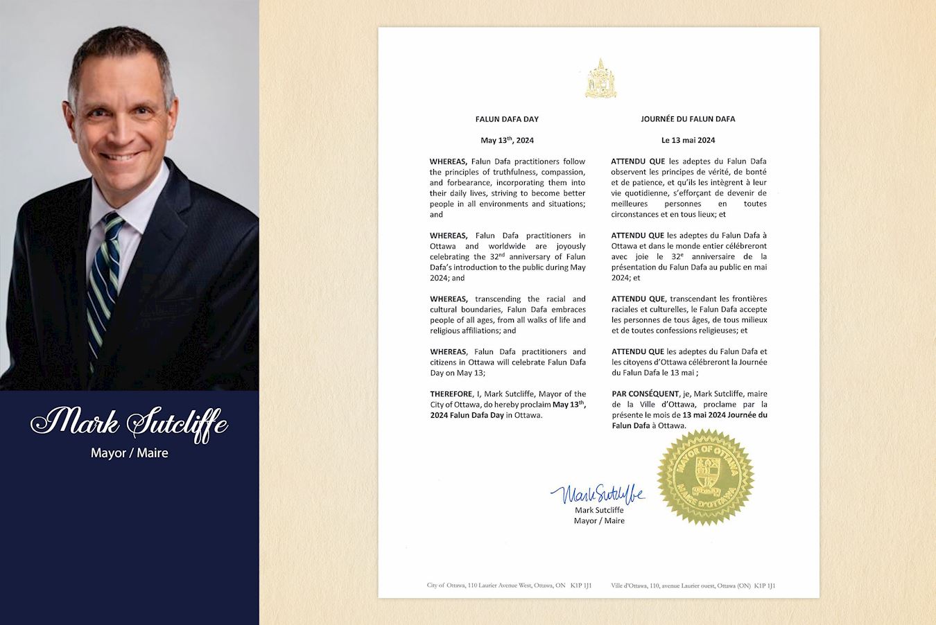 他认为当今的世界充满了对立,而法轮功所提倡真、善、忍的价值观正是现在社会需要的。希望法轮功能够唤醒全世界人的良知,“我认为我们的社会缺乏真、善、忍这些价值观。我们经常谈论这些价值观。我希望能在全世界范围内唤醒人们的良知,因为现在比以往任何时候都更有必要改变我们的行为方式,改变我们相互对立的行为方式,开始伸出援手,开始真正的分享,开始明白我们的相同之处。”