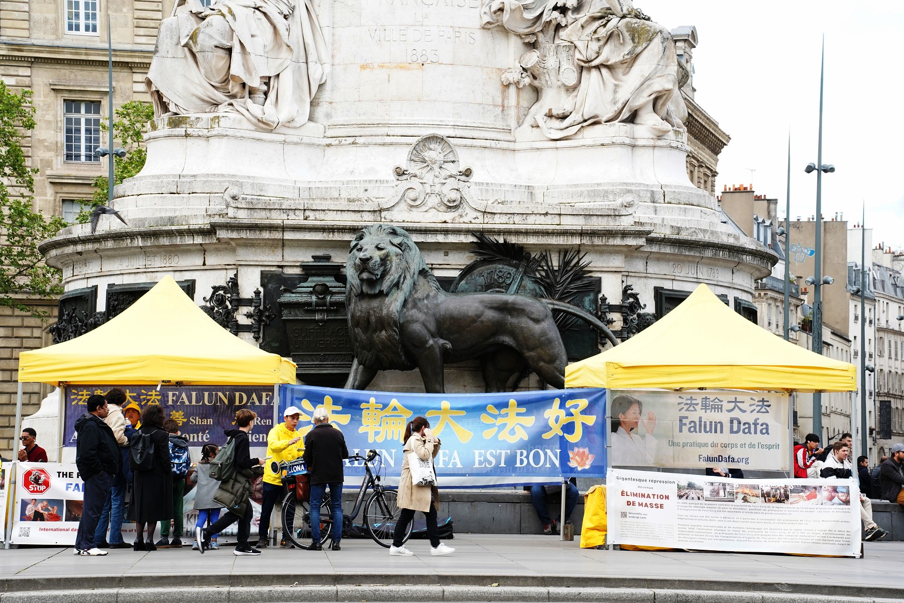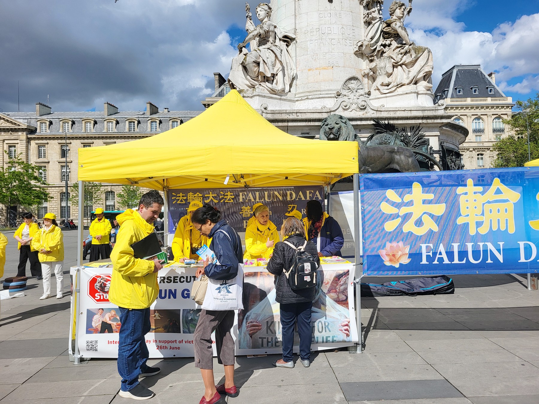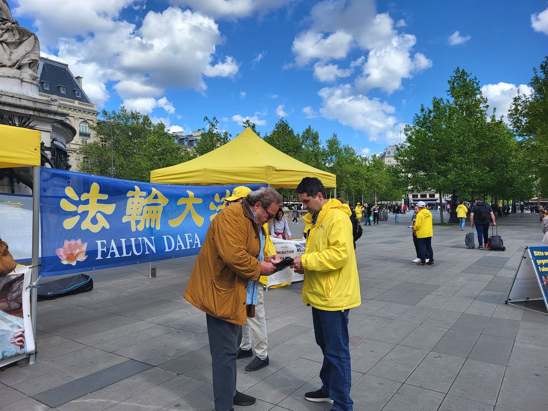 <英文版: https://en.minghui.org/html/articles/2024/5/9/216971.html>巴黎共和国广场 法轮功呼吁中共停止迫害