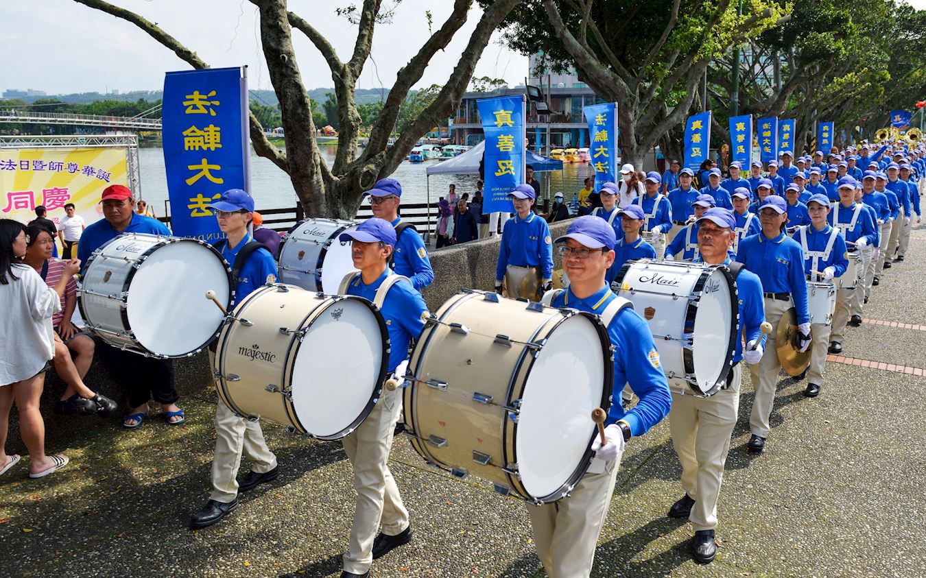 当天,学员们向师父表达了他们修炼大法后身心受益的感恩之心,也希望通过法轮大法天国乐团的游行、功法表演、音乐会等活动,向龙潭当地民众和旅客传递福音,希望有缘世人能了解法轮大法的美好。