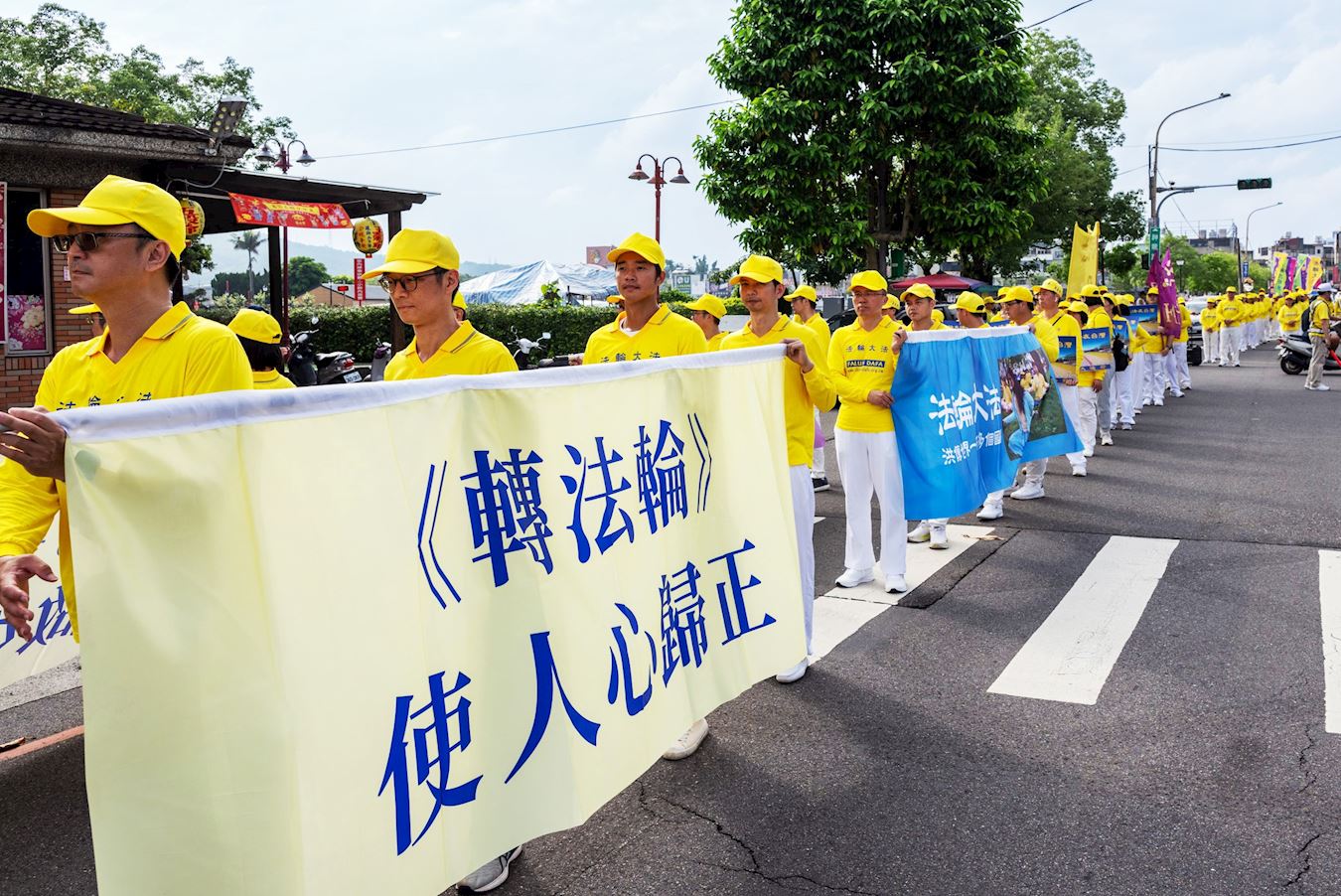 ![]() 图7~8:游行队伍行经龙潭区的龙元路、东龙路、龙源路、神龙路等大街小巷,学员们向民众递送真相资料。 |