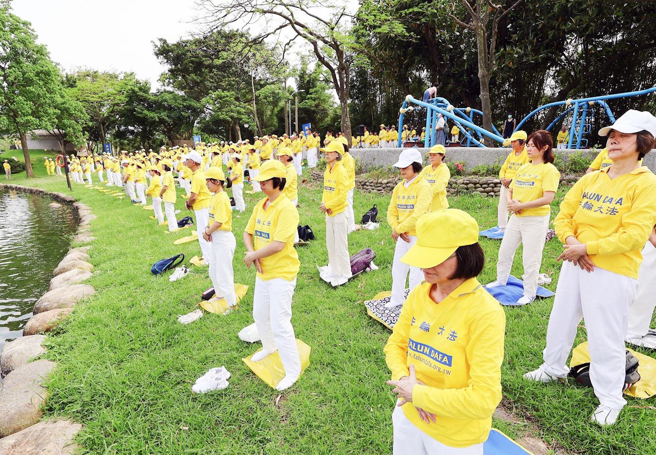 ![]() 图14~15:阳光和煦的午后,法轮功学员在龙潭大池池畔炼功,展现出祥和宁静的天人合一之美。 |