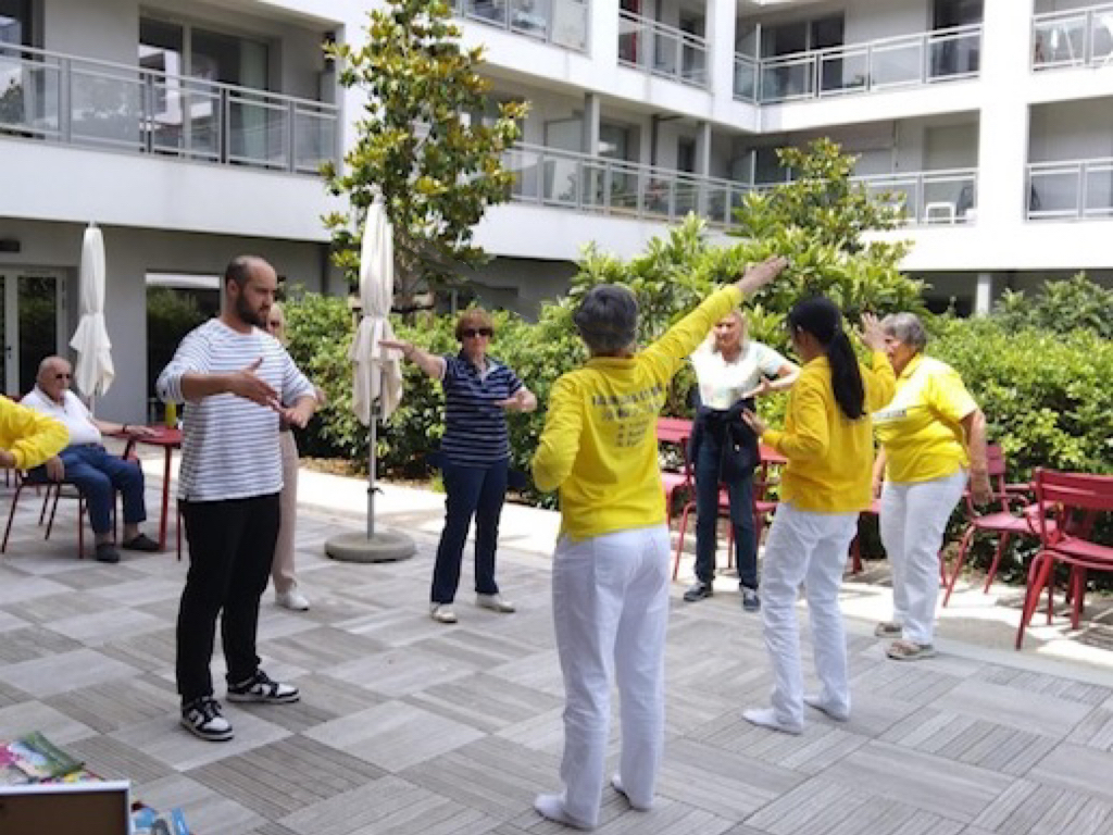 【明慧网二零二四年六月十日】二零二四年六月七日星期五,法轮功学员应邀在法国西部拉罗谢尔(La Rochelle)的博索莱尔老人院(Villa Beausoleil),向那里的老年人和工作人员介绍法轮大法并教功。博索莱尔老人院是法国高级养老院,通过体育、文化和艺术活动,帮助老年人保持身心健康。