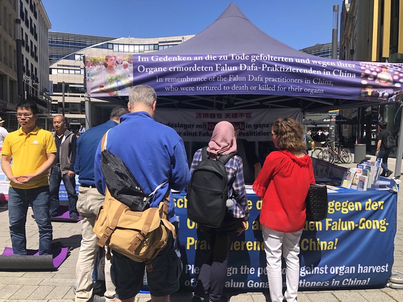 德国杜塞尔多夫及周边地区的法轮功学员六月一日和九日在市中心繁华的步行街上搭起真相点,向人们传播法轮大法的美好及揭露中共的迫害。
