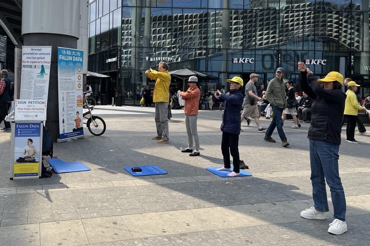 【明慧网二零二四年六月十八日】在荷兰,法轮功学员每周都在乌得勒支中央车站(Utrecht Station)设立信息亭,全年向来往的路人讲述中共迫害法轮功的真相。他们发传单,展示五套功法,并在反对中共迫害及活摘法轮功学员器官的请愿书上征集签名。