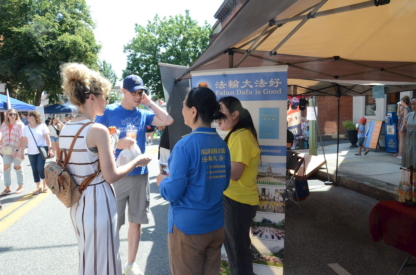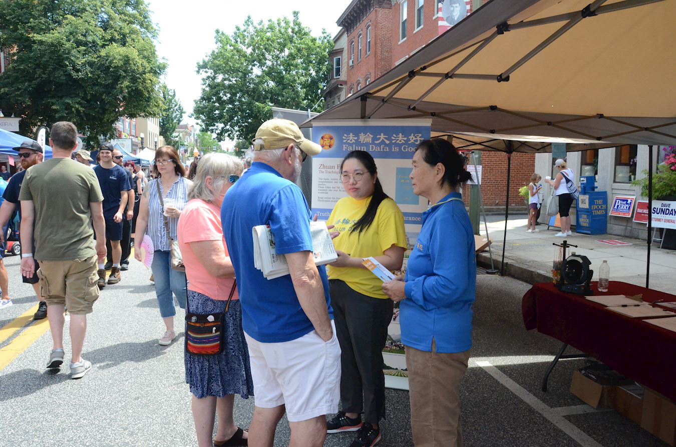 【明慧网二零二四年六月二十四日】二零二四年六月二十日,在美国宾州中部的梅卡尼克斯堡镇(Mechanicsburg)举办了盛大的第九十四届禧年街头集市(Jubilee Day Street Fair)。这是美国东海岸最大和历史最悠久的单日街头集市,始于一九二四年。法轮功学员的展位吸引了民众的广泛关注。