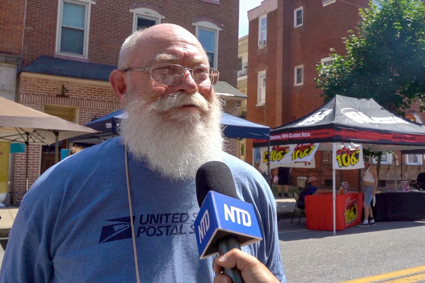图6:退休邮政员工麦金利(Wild Bill McGinley)在接受采访。