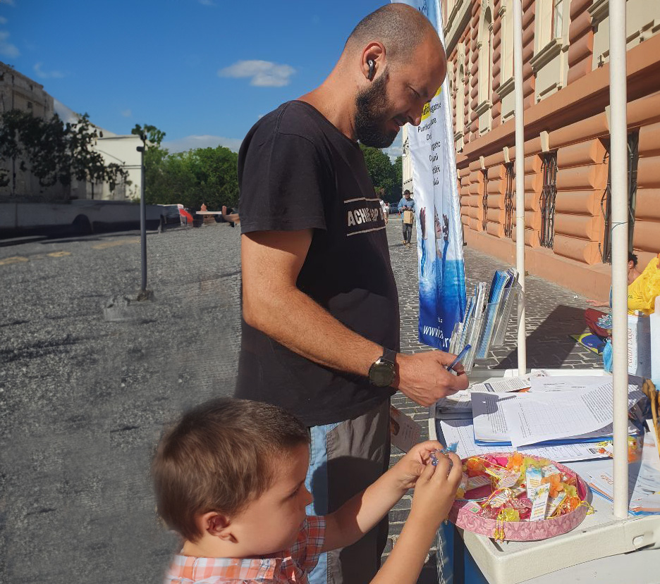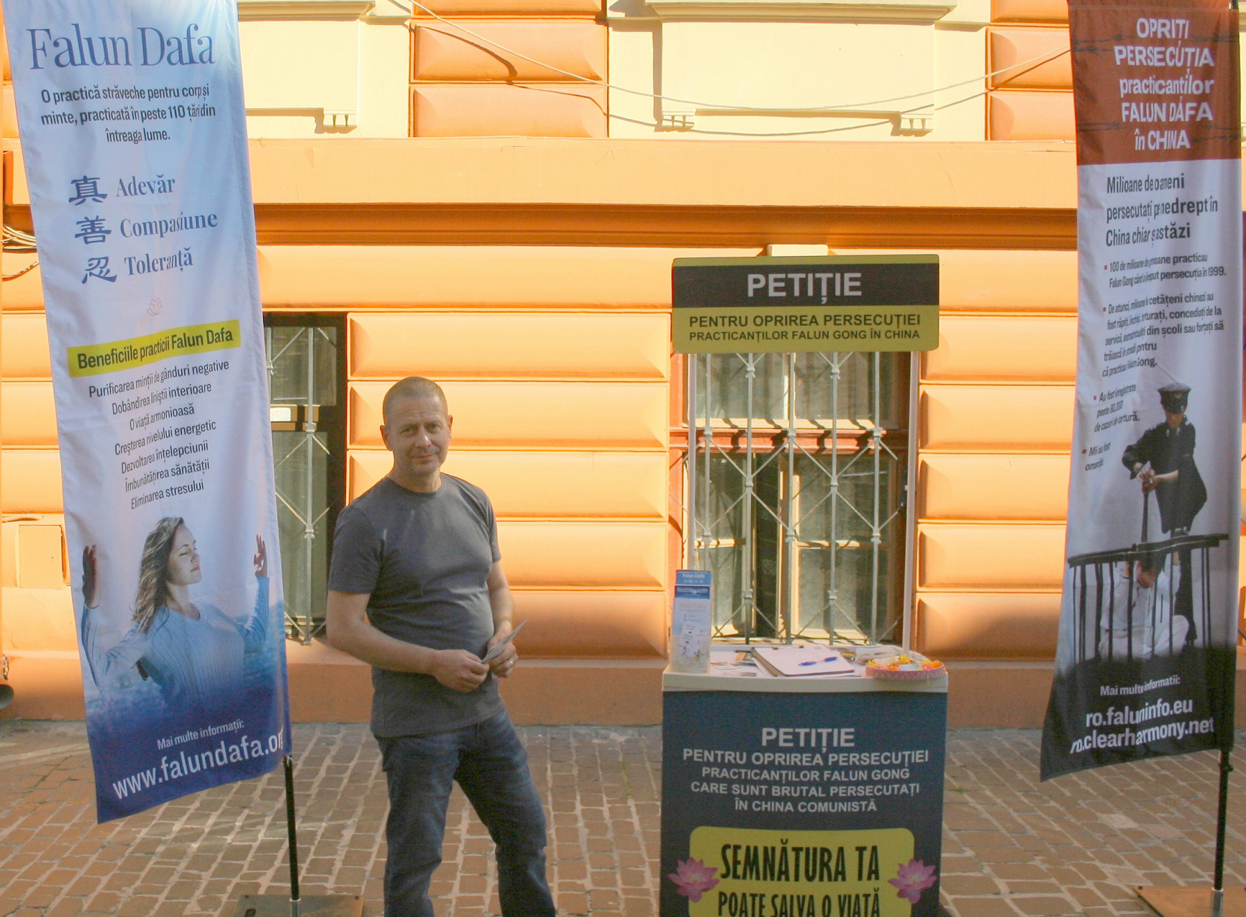 来自布拉索夫当地的一位年轻人亚历山德鲁(State Alexandru)拥有一家狗收容所,他与学员交谈后,在两份制止中共迫害的请愿书上签名,一份请愿书是呼吁罗马尼亚总统谴责中共活摘法轮功学员器官;一份谴责中共侵犯人权。