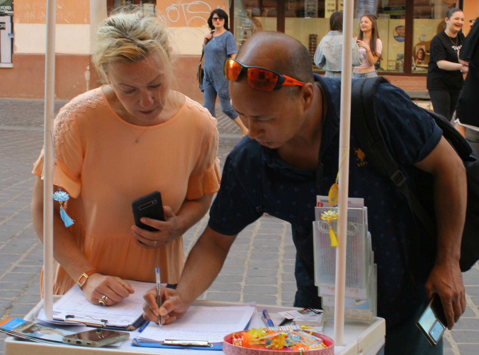 一位来自特尔古穆列什(Târgu Mureș)的游客在请愿书上签名,她表示:“我完全反对(中共的)迫害。作为人,我们应该达成共识,互相宽容——尤其是从对美好理念的信仰角度来看。”