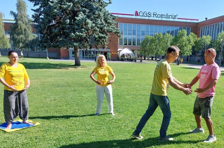 ![]() 图8:二零二四年六月十五日,一位尼泊尔人(右一)在布拉索夫学炼法轮大法。 |