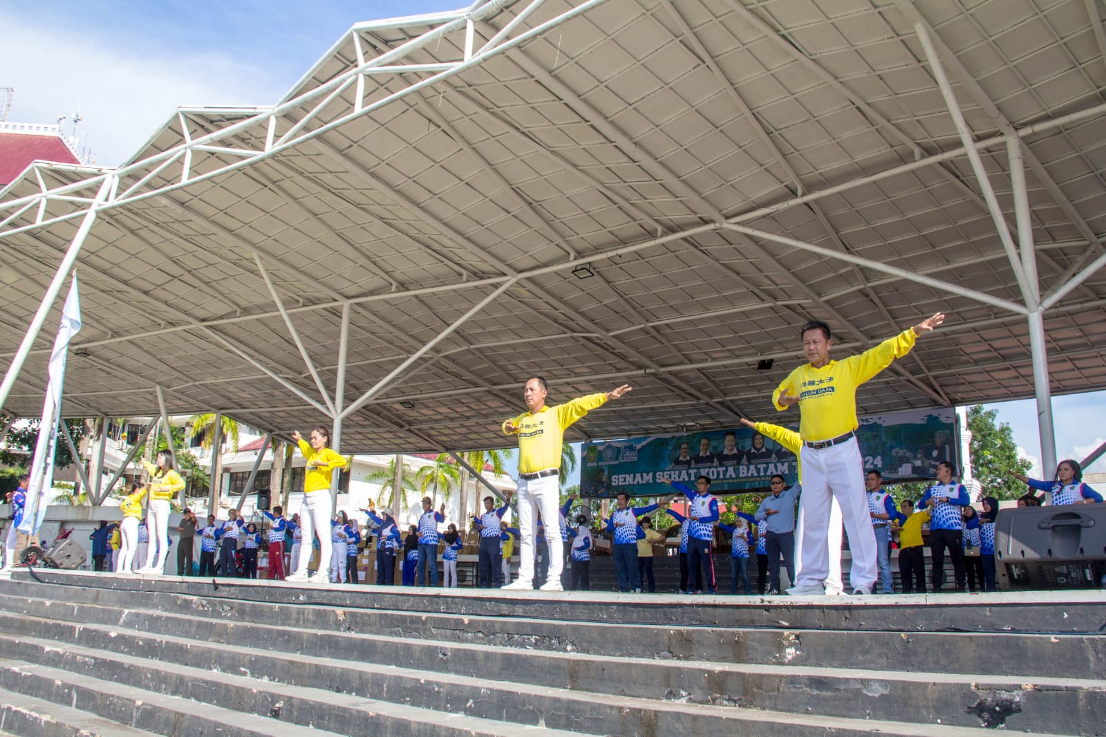 【明慧网二零二四年六月三十日】六月二十三日下午,由印度尼西亚巴淡市政府主办、青年和体育局协办的“二零二四年度健康体操节”在恩古普特里巴淡岛中心公园(Engku Putri Batam Centre Park)举行,法轮功学员受邀参加。