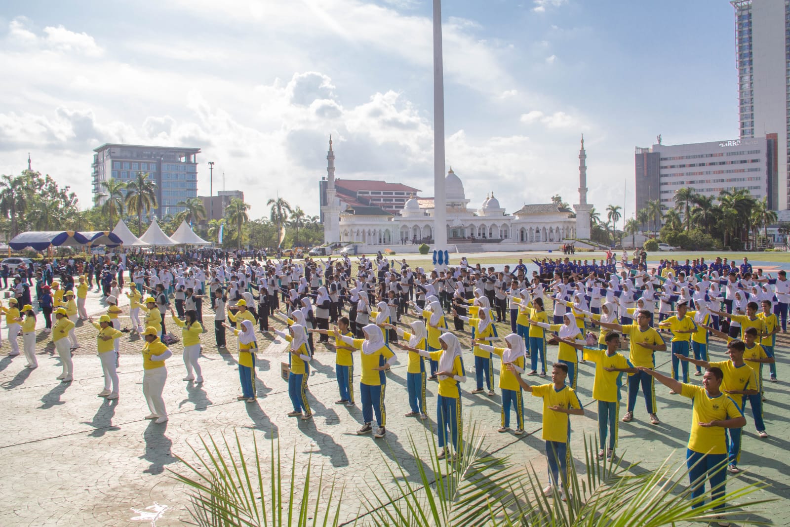 巴淡岛中心公园是一个大型公共空间,周围环绕着多个市政府机构,每年在这里举办的健康体操节都会邀请公职人员、学生、运动员、俱乐部成员和当地居民来此参加多种有益于身体健康的活动。