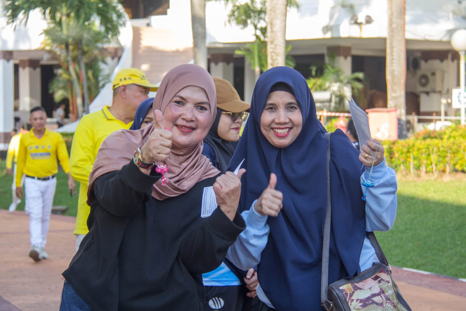 图13:巴淡市地区秘书 叶弗里丁(左,着蓝白衣者)与巴淡市青年和体育局局长祖尔卡南(右,着蓝白衣戴帽子者)。