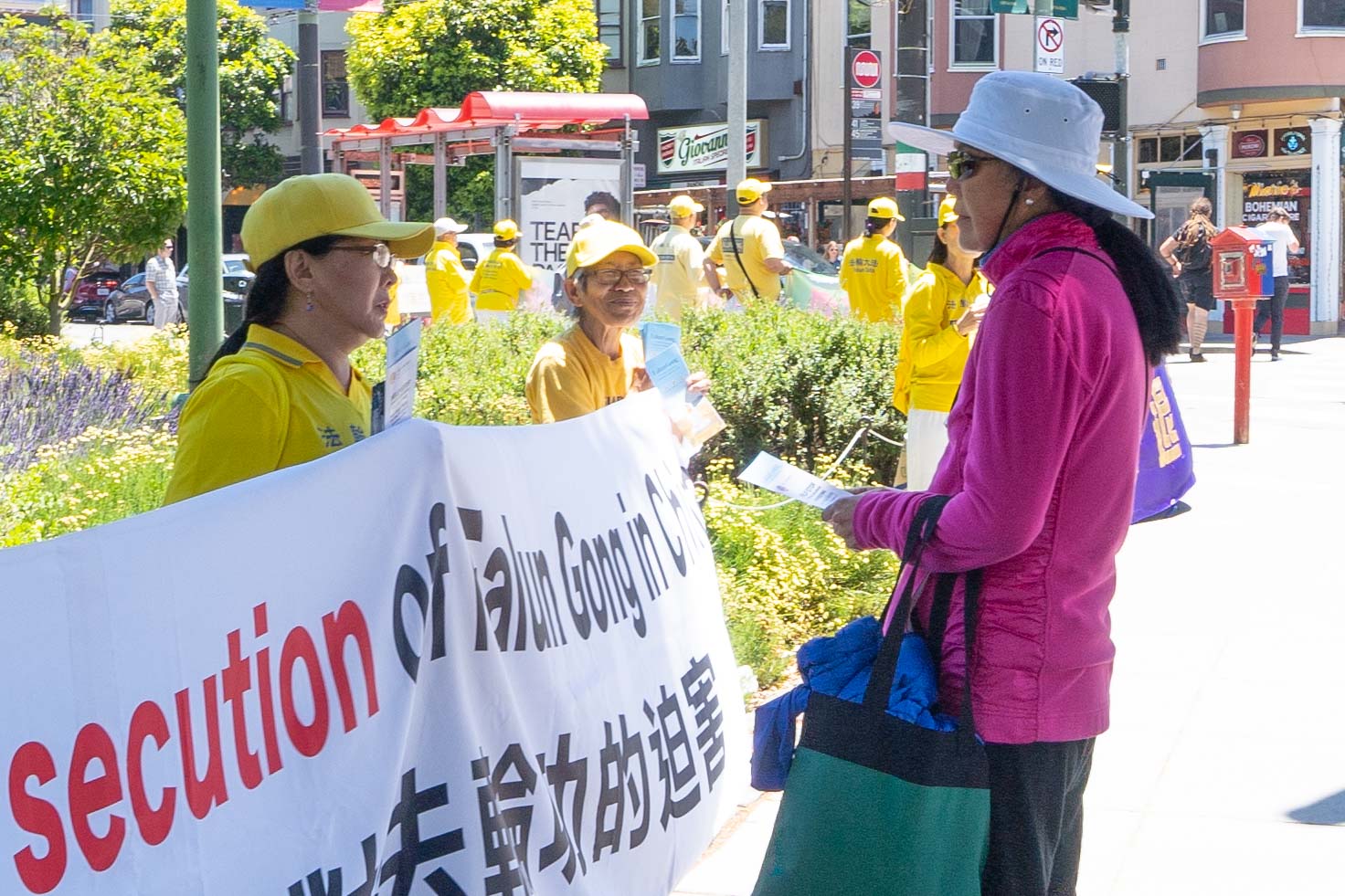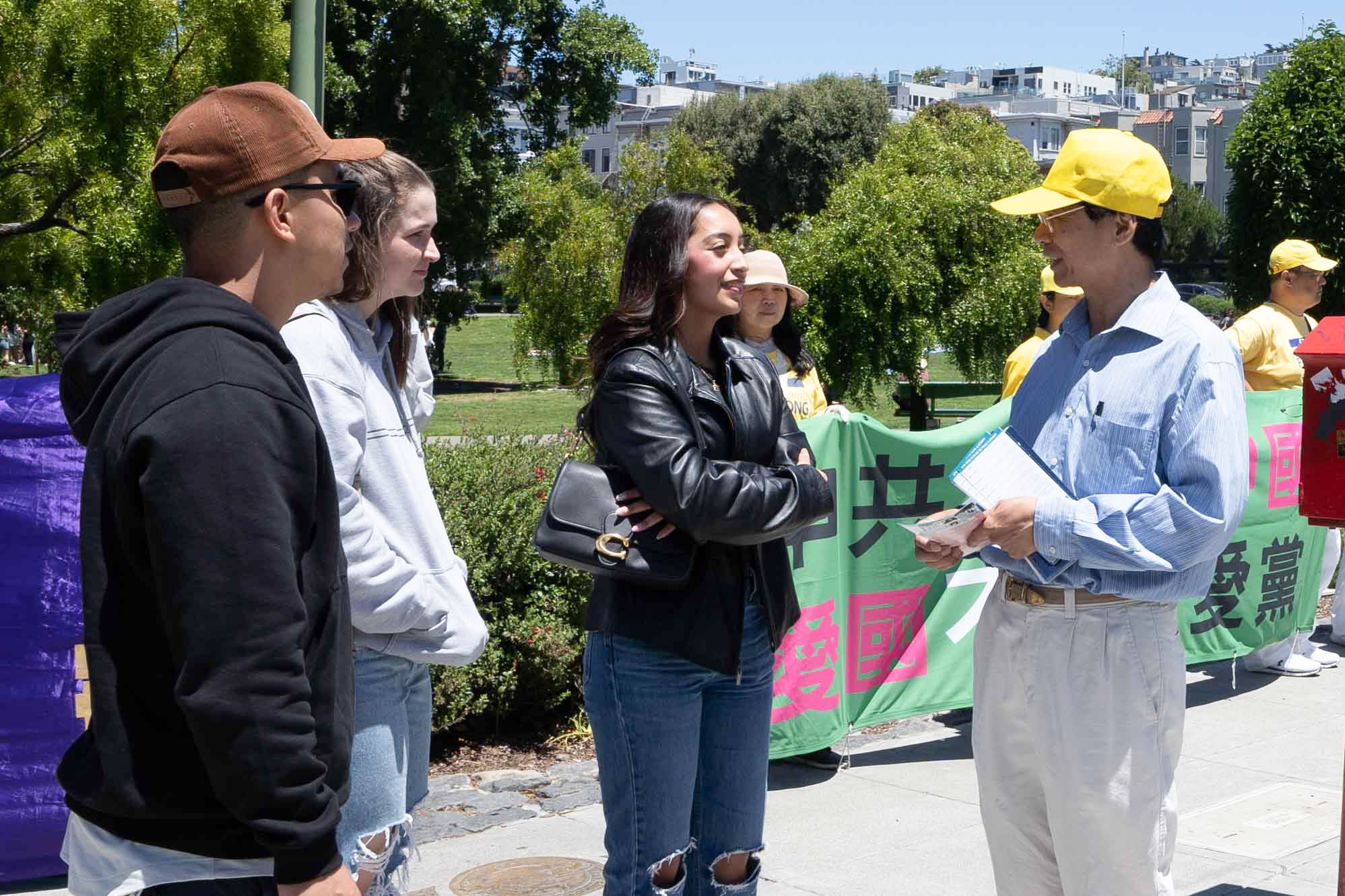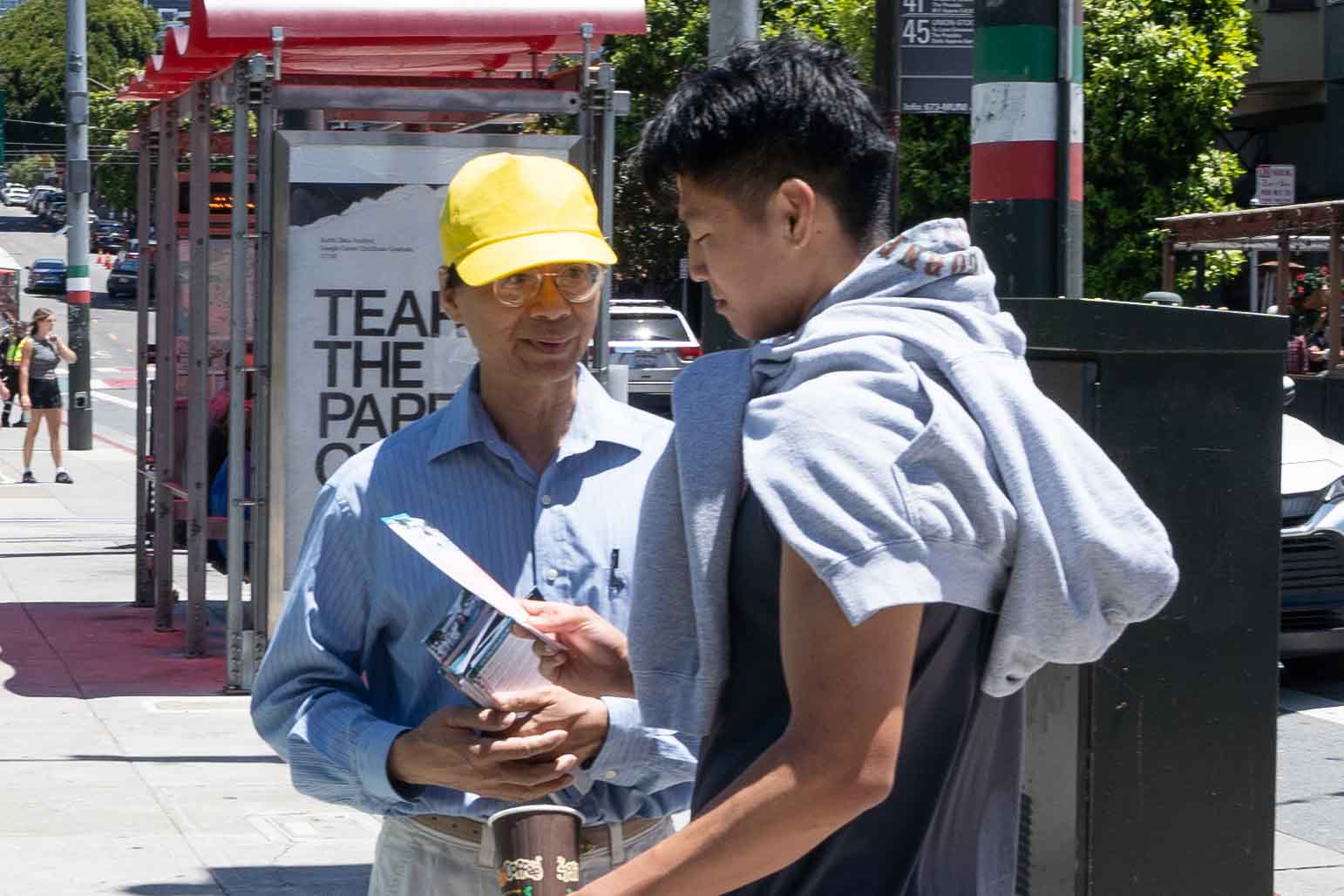 【明慧网二零二四年六月三十日】(明慧记者王英旧金山报道)二零二四年六月二十九日,旧金山湾区的部分法轮功学员在唐人街讲真相,劝三退,还举行了真相汽车游行,告诉民众美国国会众议院日前全体通过的《法轮功保护法案》,多位路人表示支持。