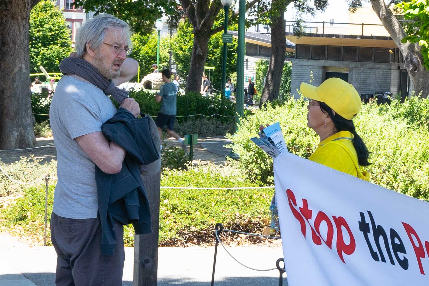 另一位旧金山居民凯利(Kelly)看到法轮功学员,很高兴,她说,“你们来这里讲真相,非常勇敢。每个人都应该了解发生在中国的迫害,你们一直都在坚持讲真相,谢谢你们。”