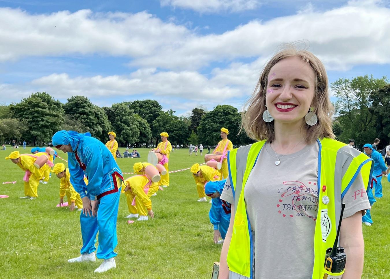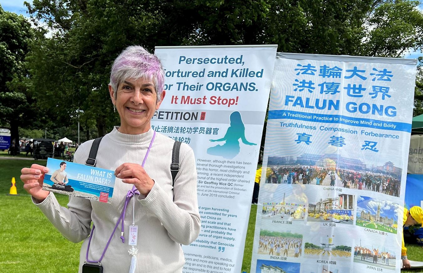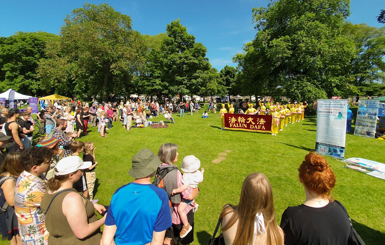 【明慧网二零二四年六月五日】(明慧英国记者站报道)二零二四年六月一日和二日,英国部分法轮功学员应邀参加了爱丁堡草地音乐节,学员以腰鼓队、舞龙队、设立展位和功法演示的方式,传递法轮大法真、善、忍的理念。主办方赞誉法轮功提升了艺术节的格局,观众得到大法的福音,纷至沓来报名参加义务教功班。
