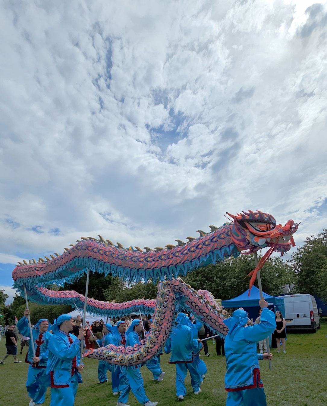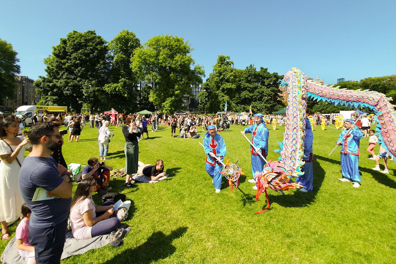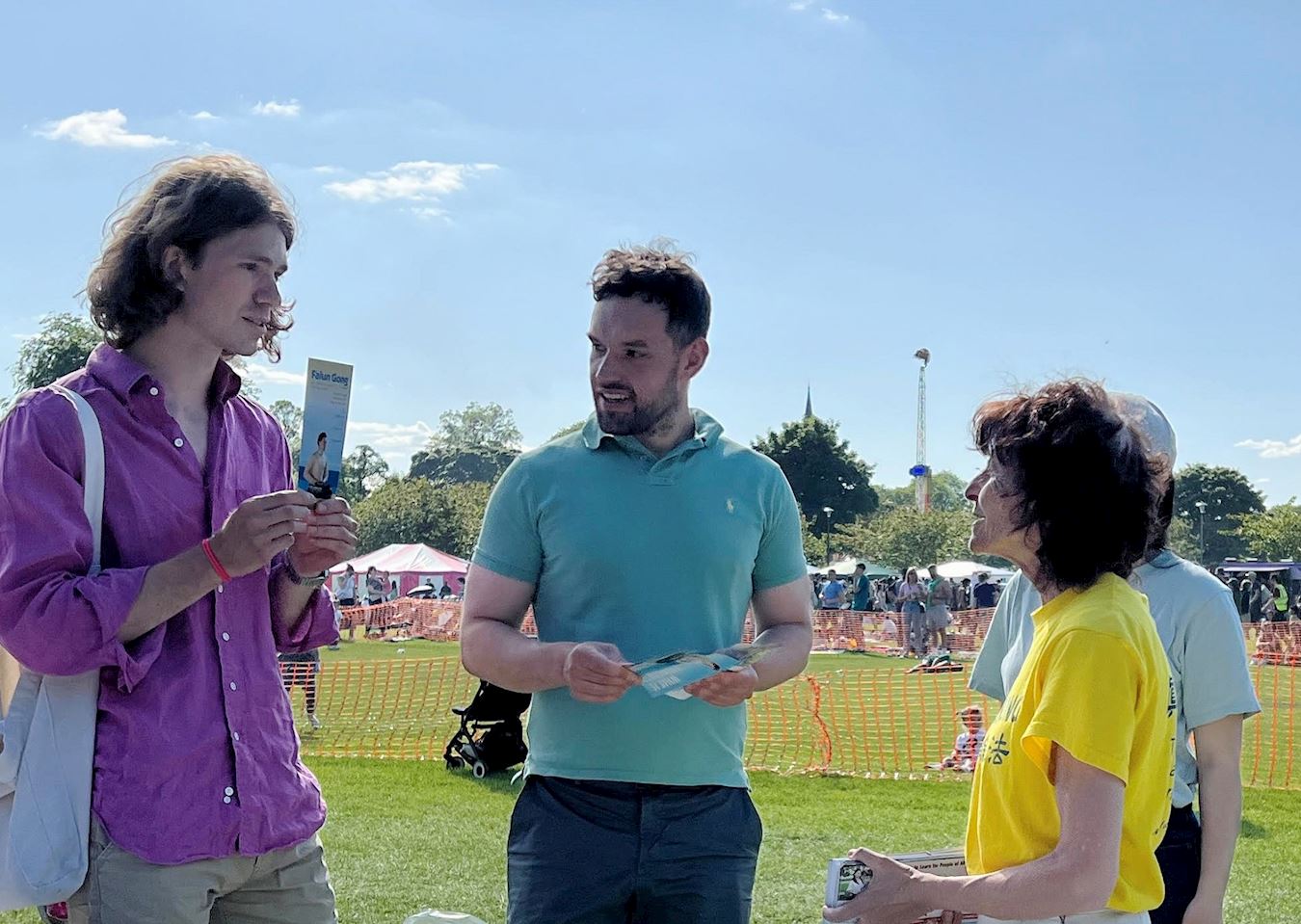 【明慧网二零二四年六月五日】(明慧英国记者站报道)二零二四年六月一日和二日,英国部分法轮功学员应邀参加了爱丁堡草地音乐节,学员以腰鼓队、舞龙队、设立展位和功法演示的方式,传递法轮大法真、善、忍的理念。主办方赞誉法轮功提升了艺术节的格局,观众得到大法的福音,纷至沓来报名参加义务教功班。