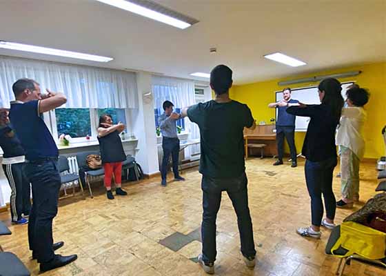 五月十三日至五月底,德国法轮功学员相继在法兰克福、柏林、慕尼黑、曼海姆和不来梅举办了为期九天的学习班(简称九天班),免费教人们学炼法轮功。