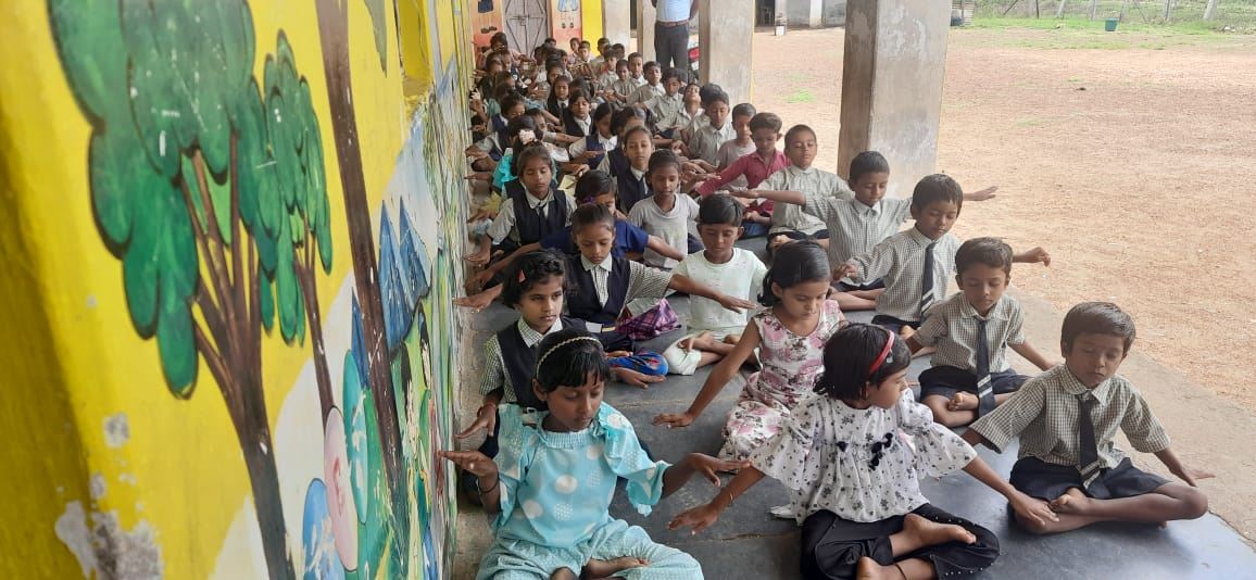 在奇穆尔村第二Z.P.小学,校长瓦尔莎·尼姆吉(Varsha Nimje)女士听说学员要教学生们法轮大法时非常高兴,立即为学生们安排了一次教功班,约三十名学生参加。
