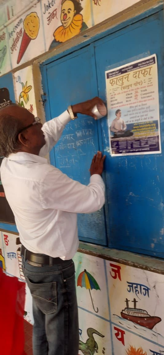 ![]() 图6:法轮功学员在布告栏上张贴宣传海报。 |