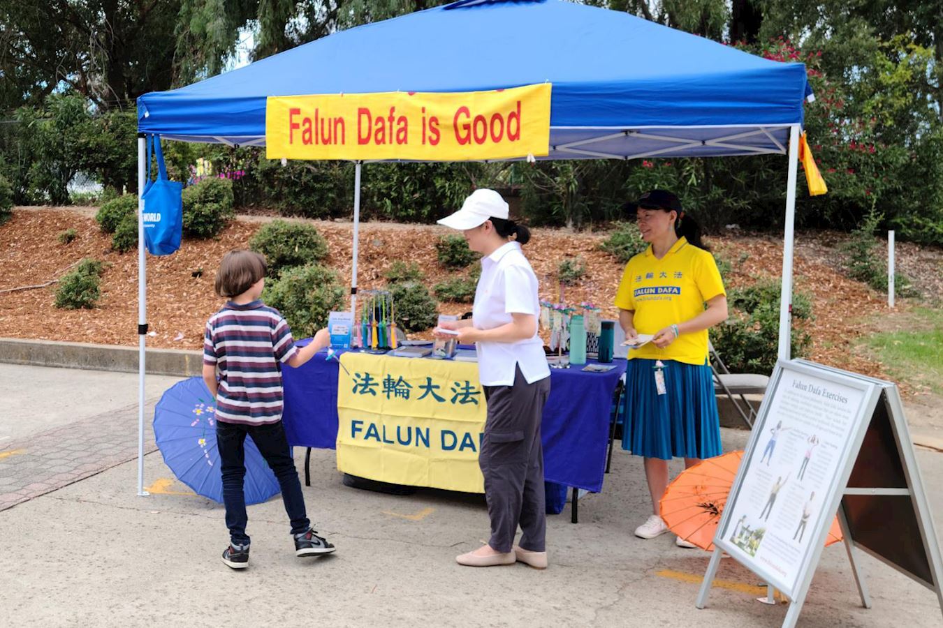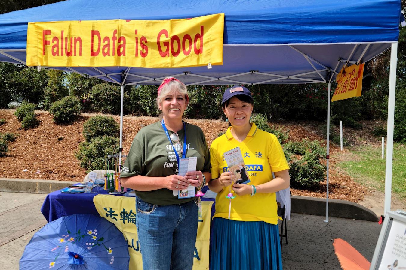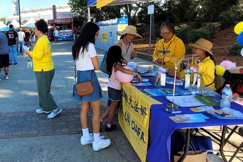 法轮功学员们还会在随后的两个周末,在加州博览会入口处设置展位,向民众弘法讲真相。