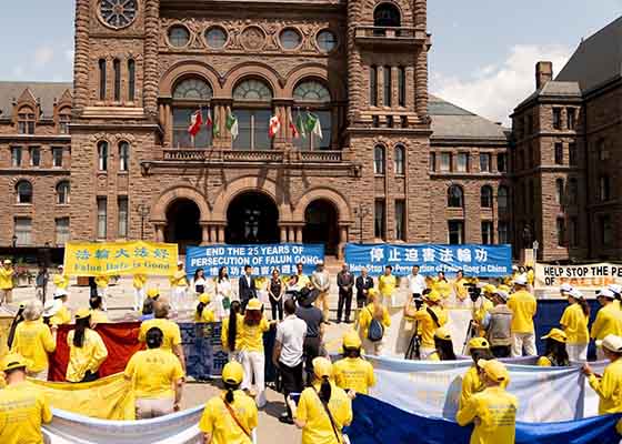 七月二十日,近千名加拿大法轮功学员在安大略省议会大楼前举行和平反迫害集会活动,呼吁制止中共长达二十五年的对法轮功学员的迫害。