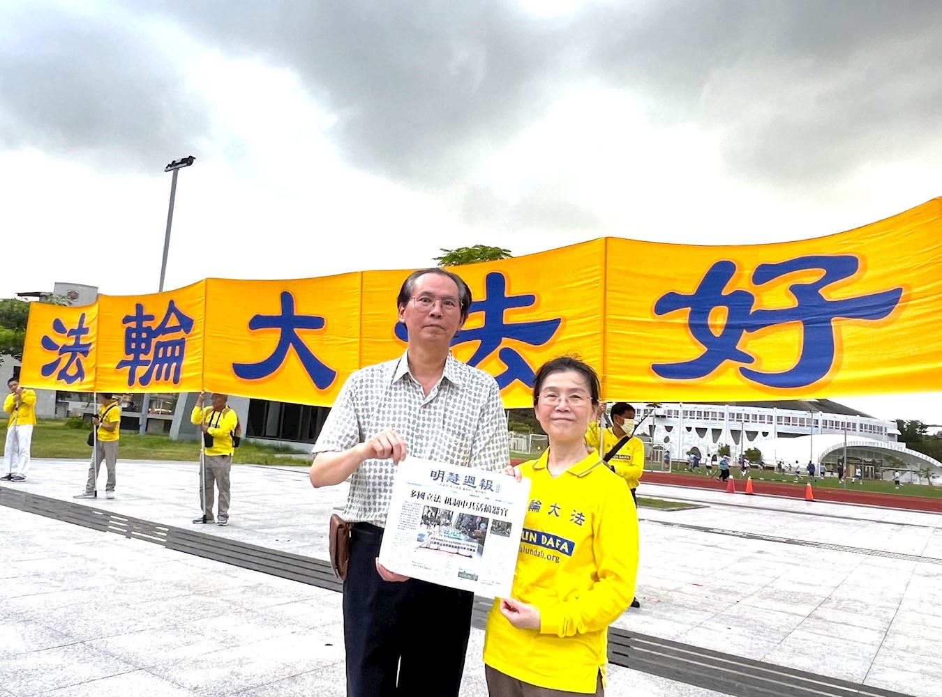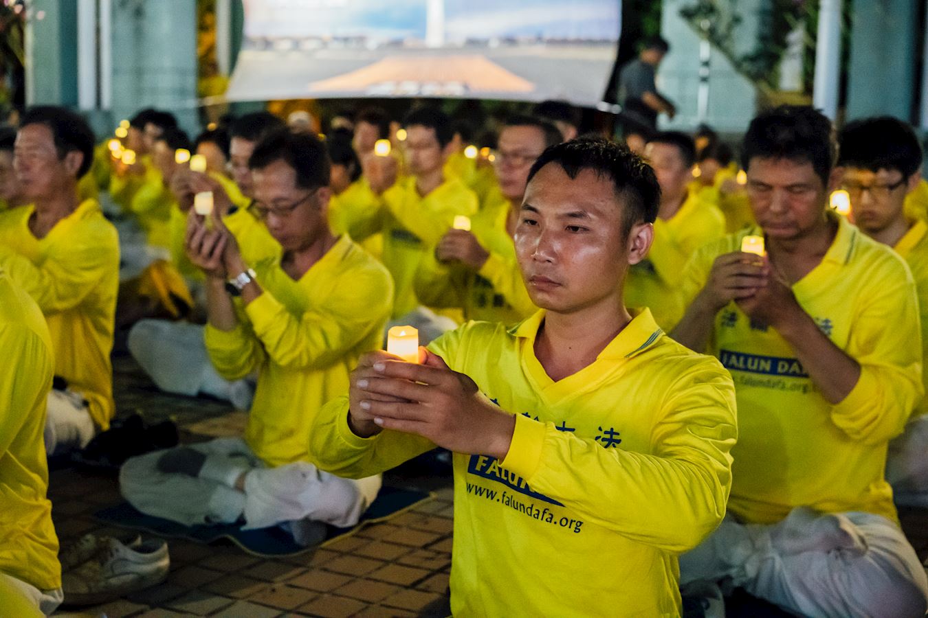 徐姓夫妇今年六月初修大法,听说七月举办“法轮功烛光夜悼”,他们便决定参加。徐先生说,我俩在其它宗派修持多年,奉献财物无数。后经朋友介绍学炼法轮功,发现大法不收费不存物,以真善忍为依归,唯求修己利他,遇到问题向内找,“这么好的功法,竟然被打压,我们一定要挺身反迫害。”