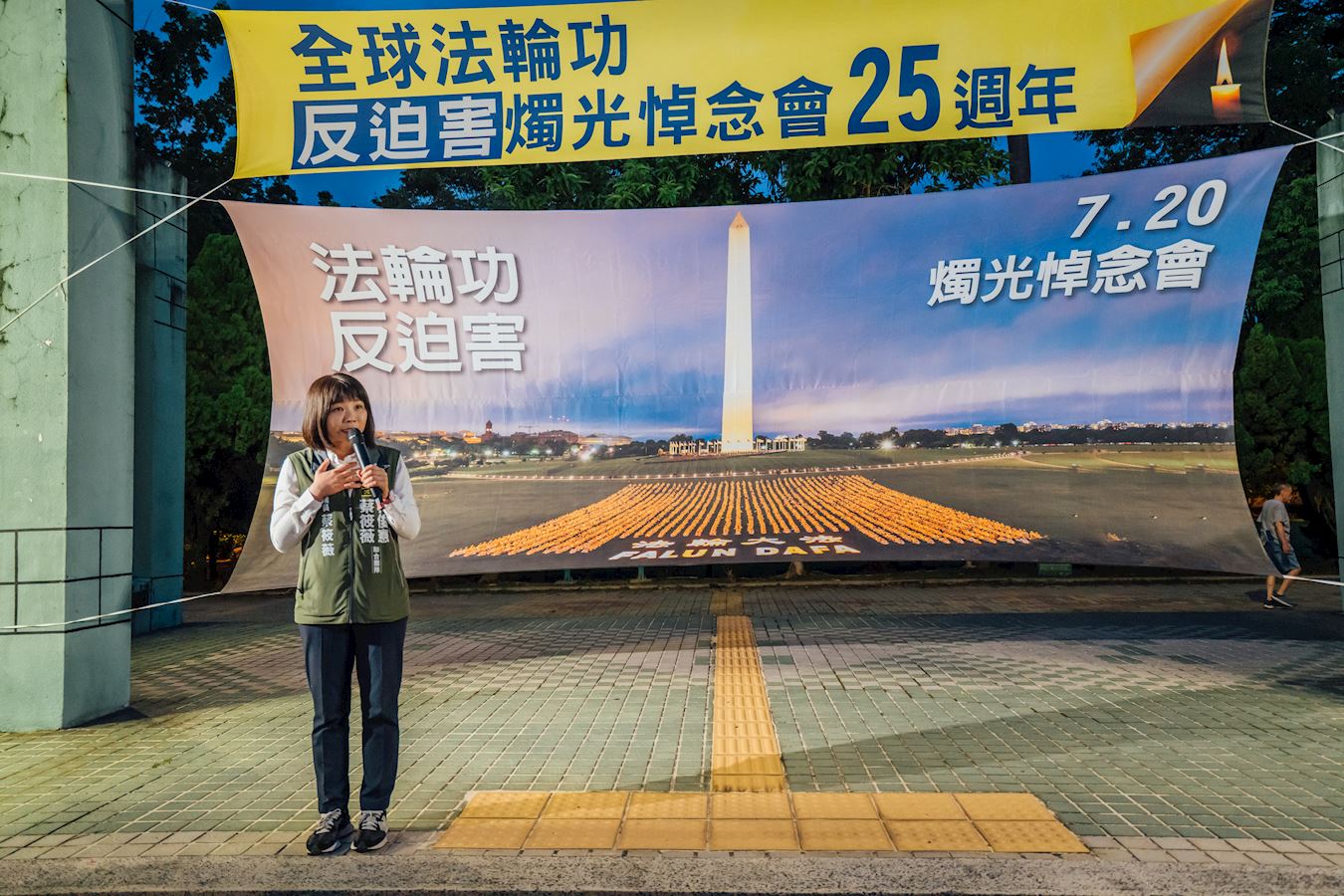 往年多次参与烛光夜悼,台南市议员蔡筱薇今年再度力挺声援,她佩服法轮功学员二十五年来面对迫害,坚持真、善、忍的理念,或采游行、或以静坐的方式,和平理性地传递真相,让更多人知道。她鼓励大家勇敢站出来,加入声援的行列。