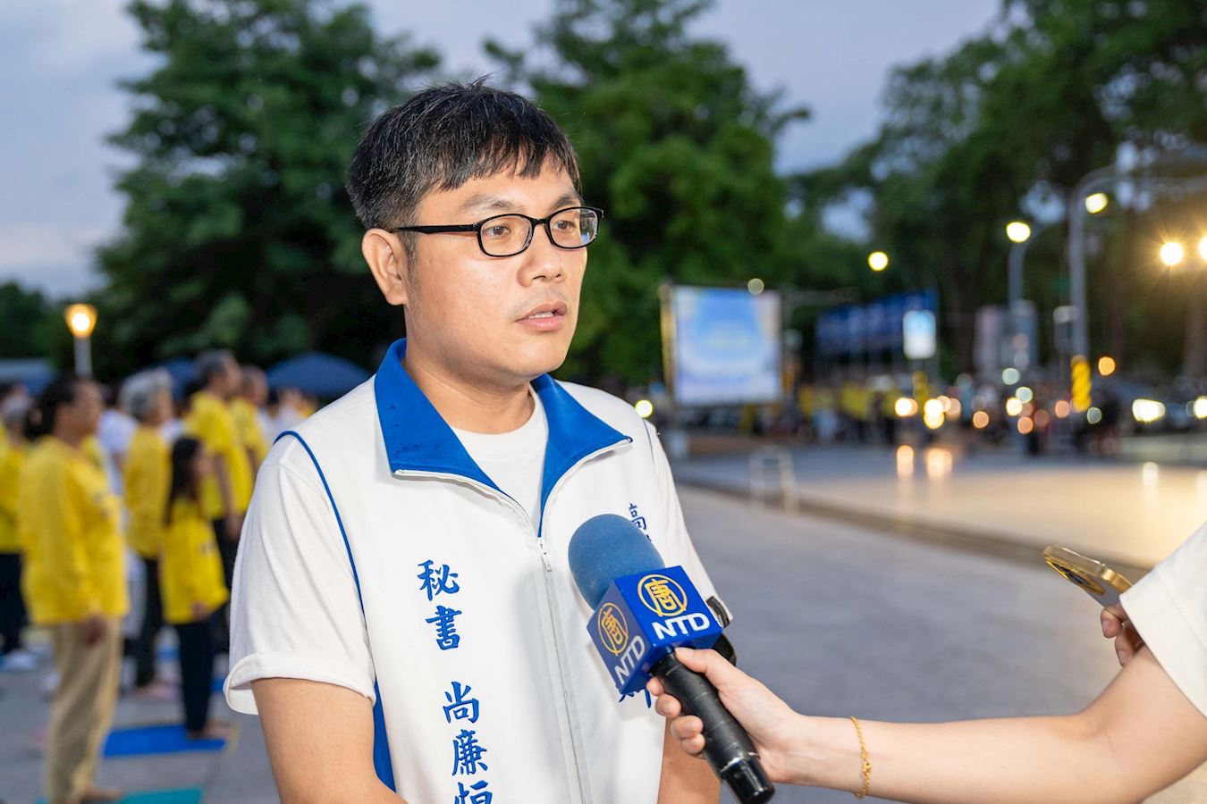 台南市前议员李文正也到场力挺,他被现场殊胜的场景感动。“今晚的天很黑,但你们的烛光,为人类的自由民主人权带来无限的希望。”他还表示几十年来,法轮功学员永不放弃地在全世界讲清真相,努力为全人类争取人权自由,因此他要大力感谢。