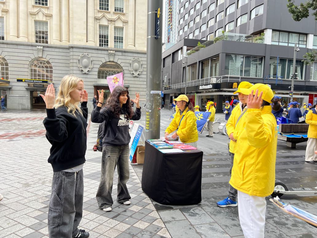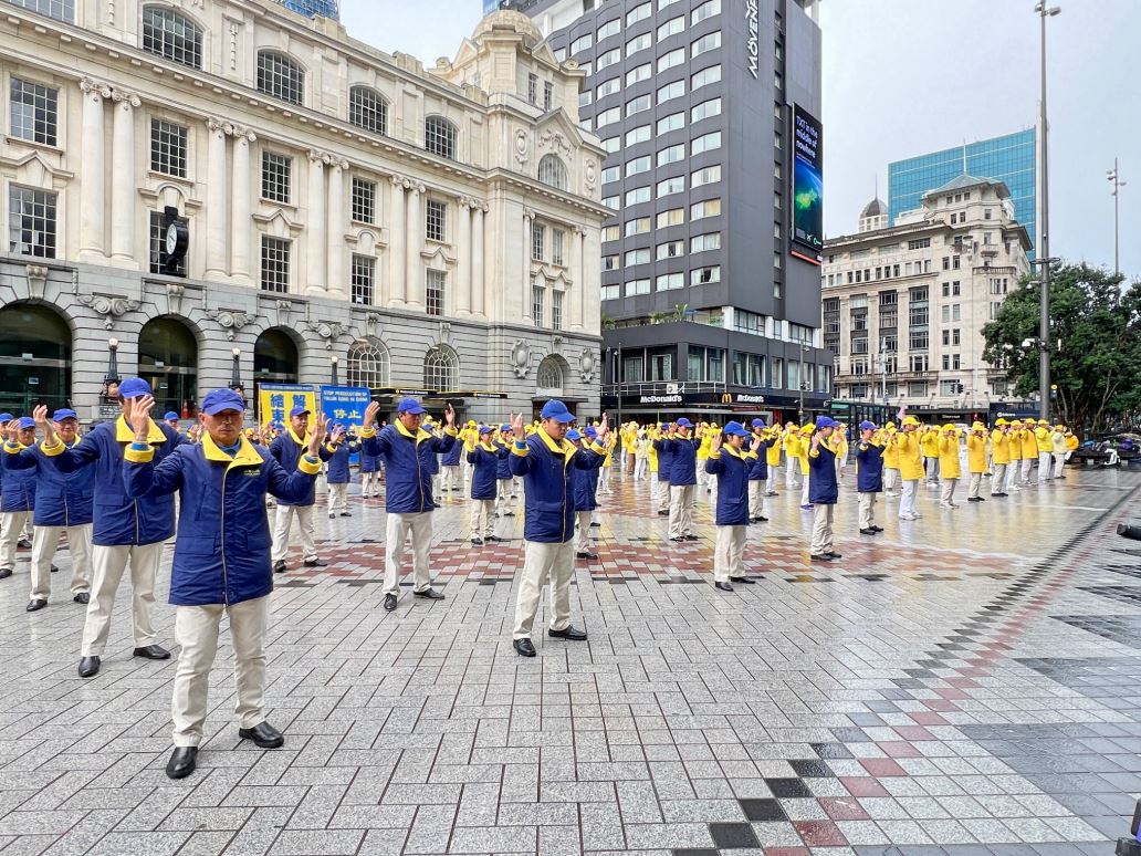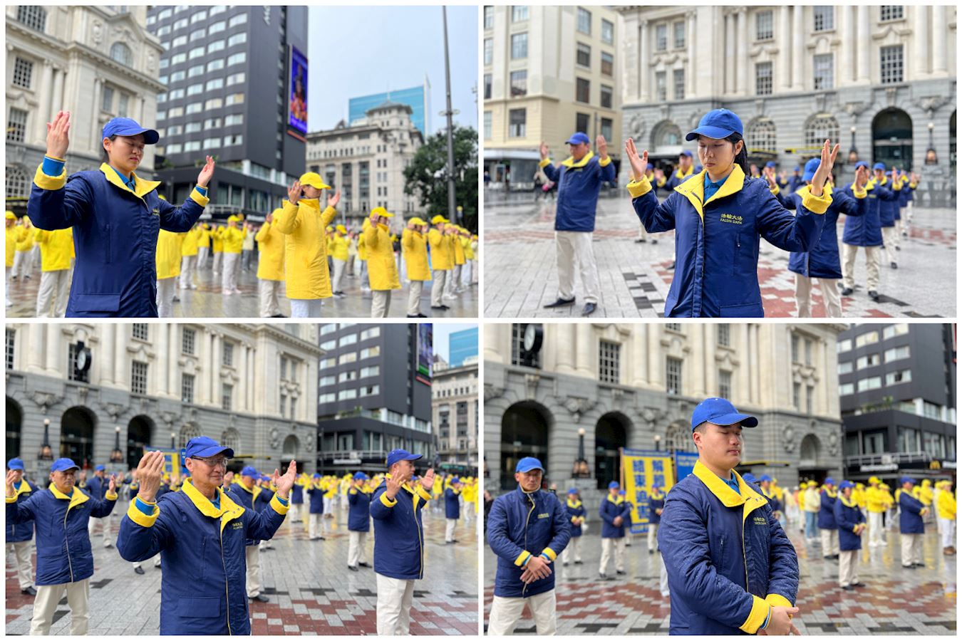![]() 图1~4:二零二四年七月二十一日,法轮功学员在奥克兰市中心伊丽莎白(Elizabeth Square)集会炼功,纪念反迫害二十五周年。 |