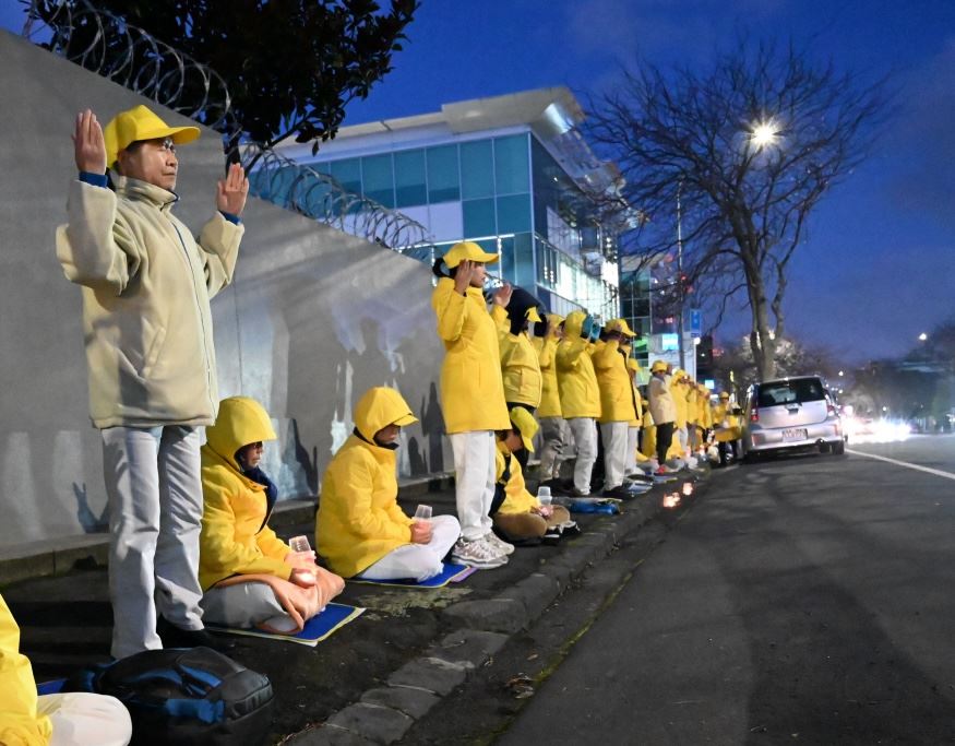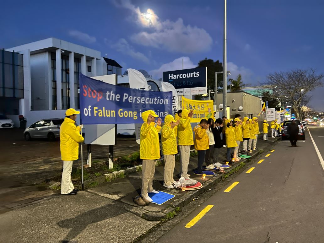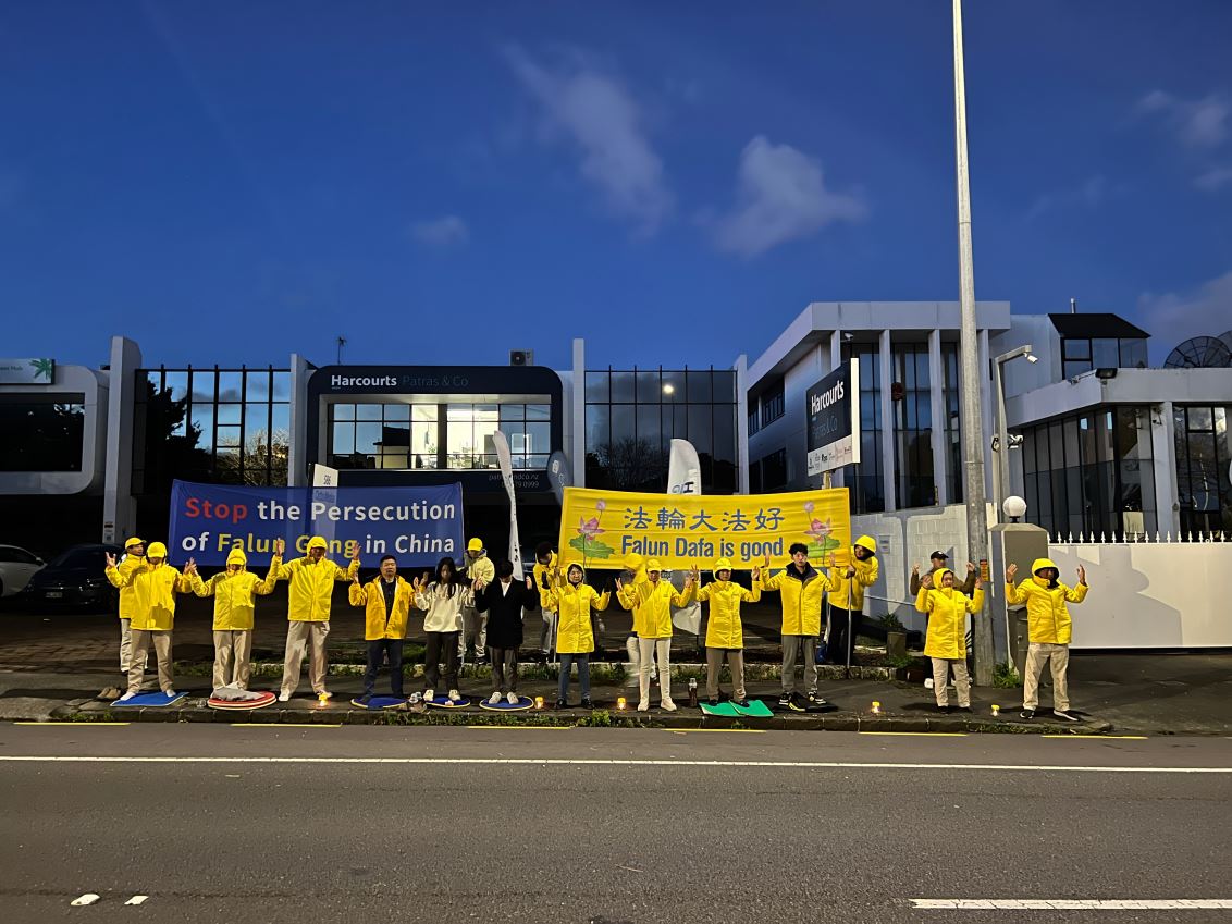 当晚,法轮功学员在中共驻奥克兰领馆前烛光守夜,悼念因坚守信仰被迫害致死的法轮功学员,呼吁新西兰人民帮助制止中共迫害法轮功,来往的车辆纷纷鸣笛致意。