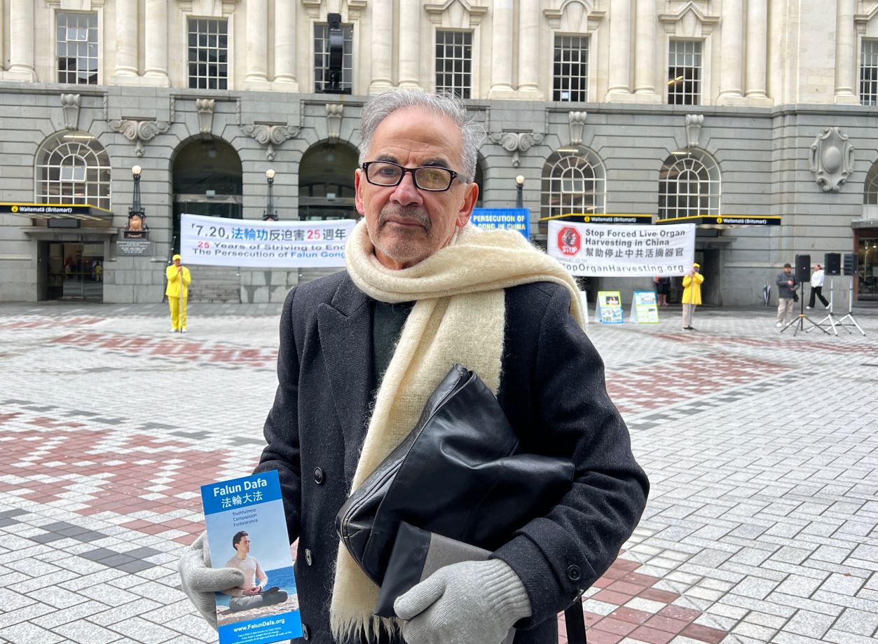 新西兰人权律师凯瑞·高尔(Kerry Gore)到场支持,他说:“中共迫害法轮功学员已有二十五年之久。迫害的形式多种多样:非法逮捕、非法拘禁、灌输思想、强迫法轮功学员放弃信仰、肉体折磨、奴役和强迫劳动、经济上搞垮,以及非自愿活摘人体器官,而这是一种国家认可的谋杀形式。”很多国际独立组织都对这种迫害进行了全面详细的报道。
