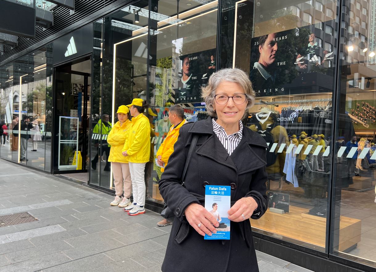 朱莉·内森(Julie Nathan)是一位花艺师。内森在市中心几次看到过法轮功学员的讲真相活动,也了解中共对法轮功的迫害。