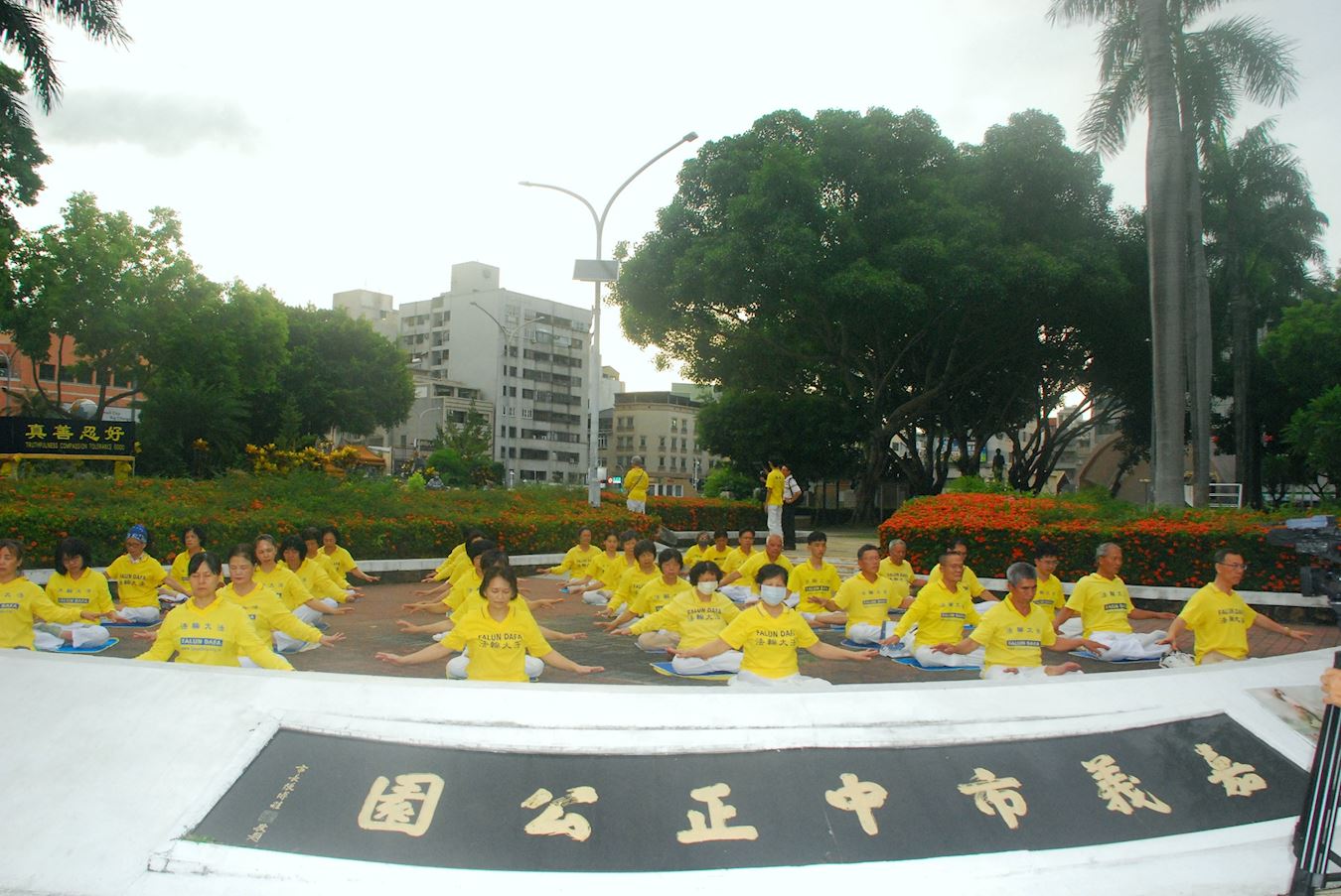 '图1:七月二十日傍晚,云林县的法轮功学员在斗六市柚子公园举办反迫害集会和烛光悼念。'