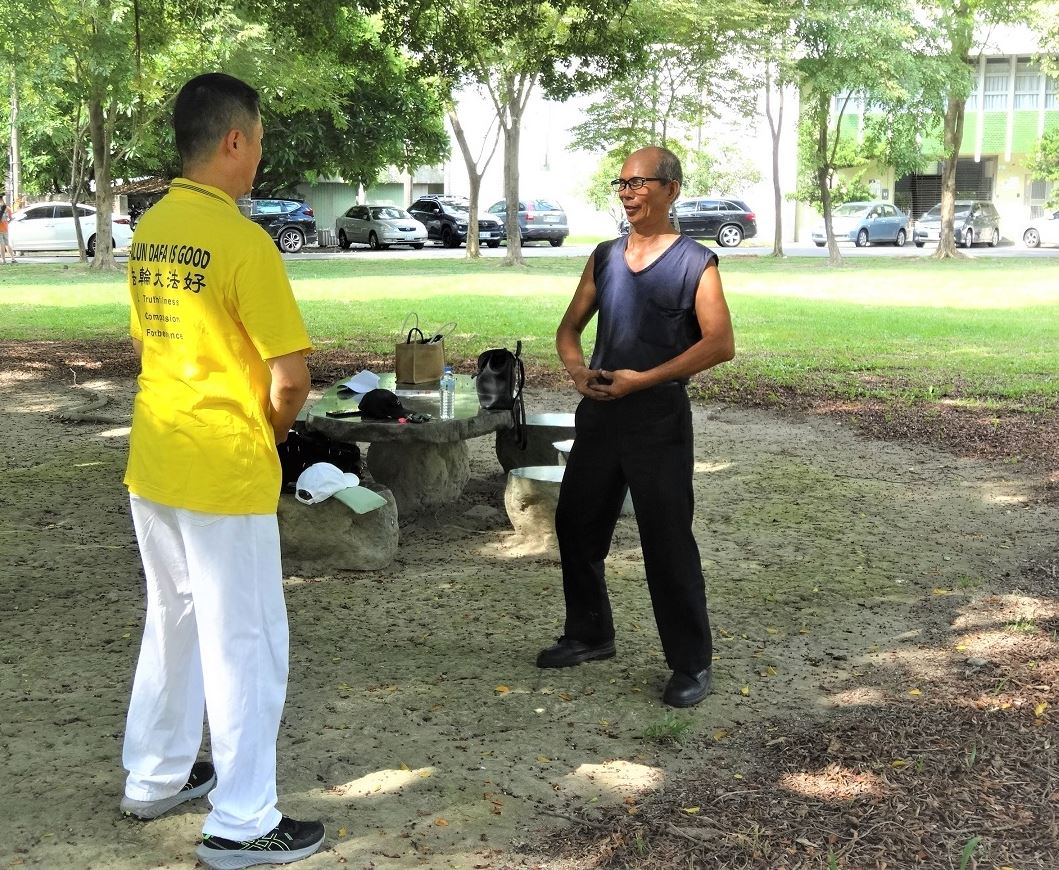 嘉义市一位先生也赞佩法轮功美好的形象,并表示:“修法轮功的有正能量,每个人看来都很善良。”
