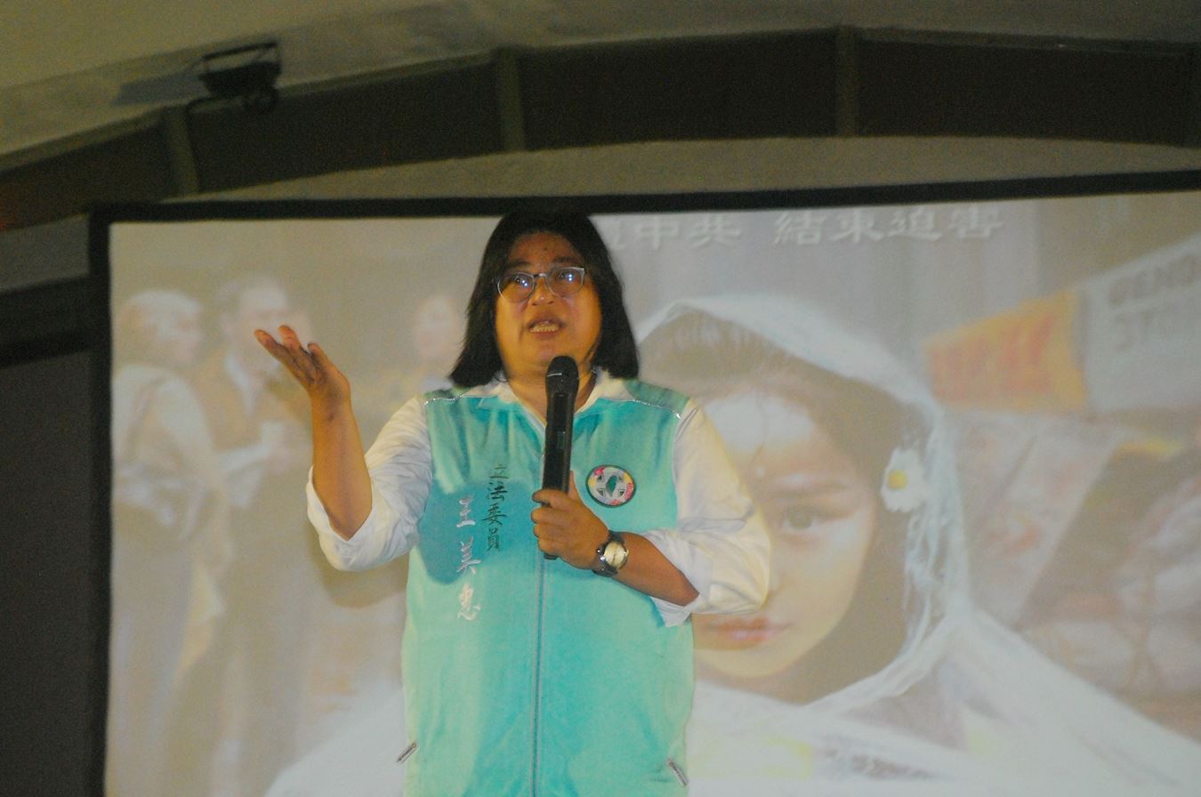 '图9:立法委员王美惠到嘉义市中山公园集会现场声援法轮功反迫害。'