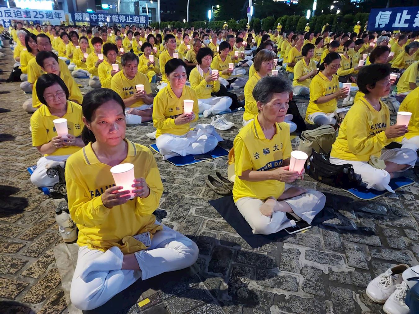 ![]() 图2:碧琴(左一)参加二零二四年七月二十日法轮功反迫害二十五周年烛光悼念会。 |
