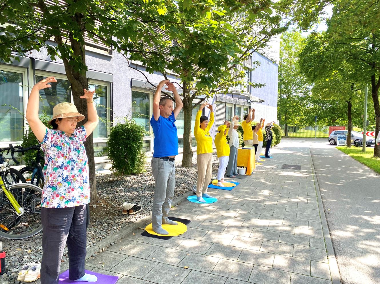 ![]() 图2:二零二四年七月十八日,法轮功学员在慕尼黑中领馆对面举办反迫害二十五周年活动。 |