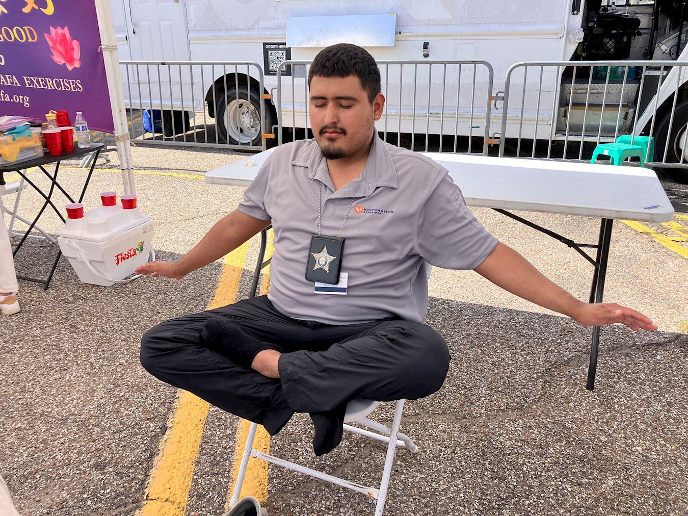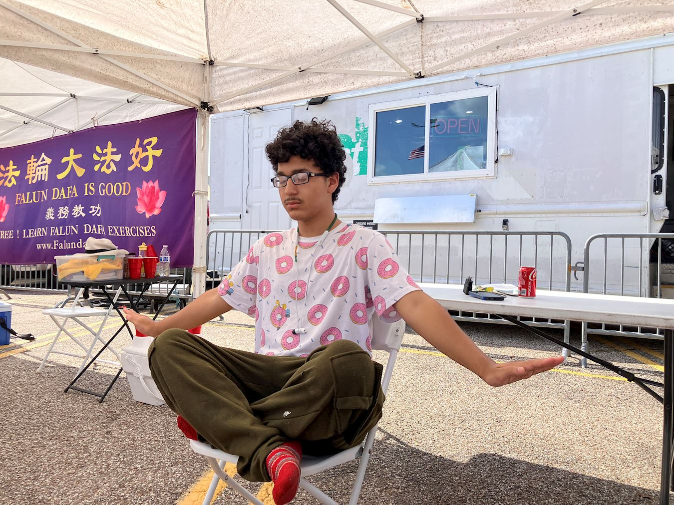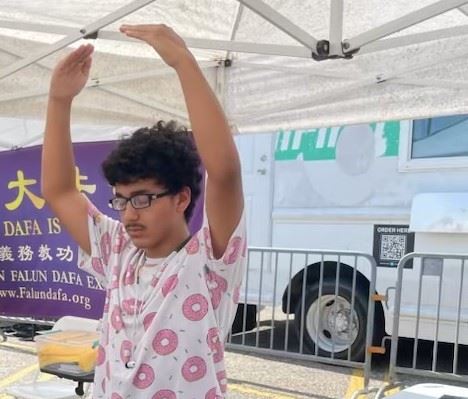 内森(Nathan)先生就职于休斯顿健康部,是本次活动的工作人员。他对法轮功非常感兴趣,当场学炼了五套动作,尽管天气炎热,但他很享受炼功的过程,学的十分认真。他说:“(炼功的)感觉非常好,很平静。”