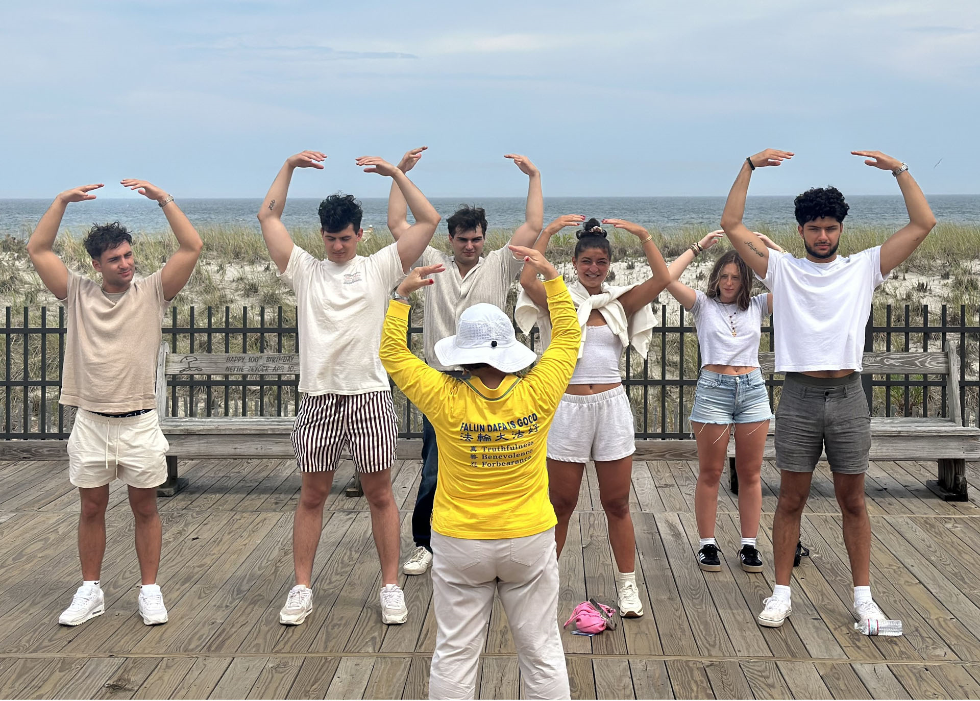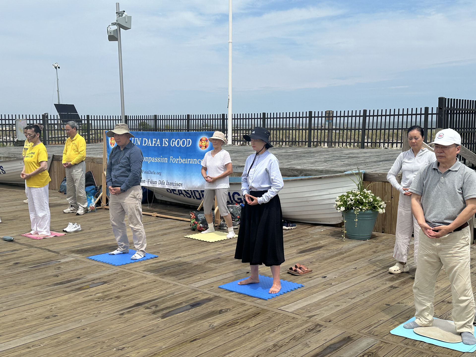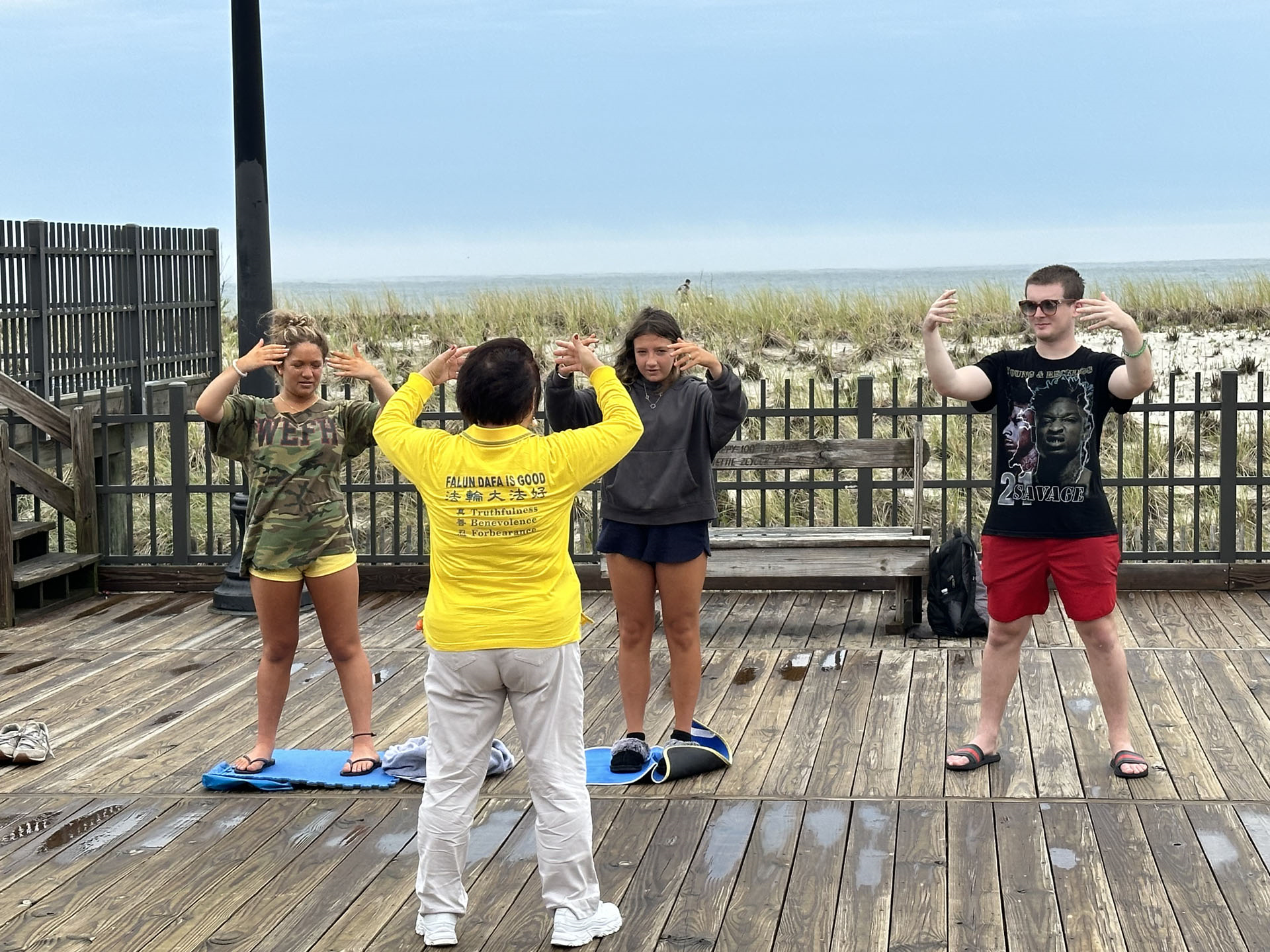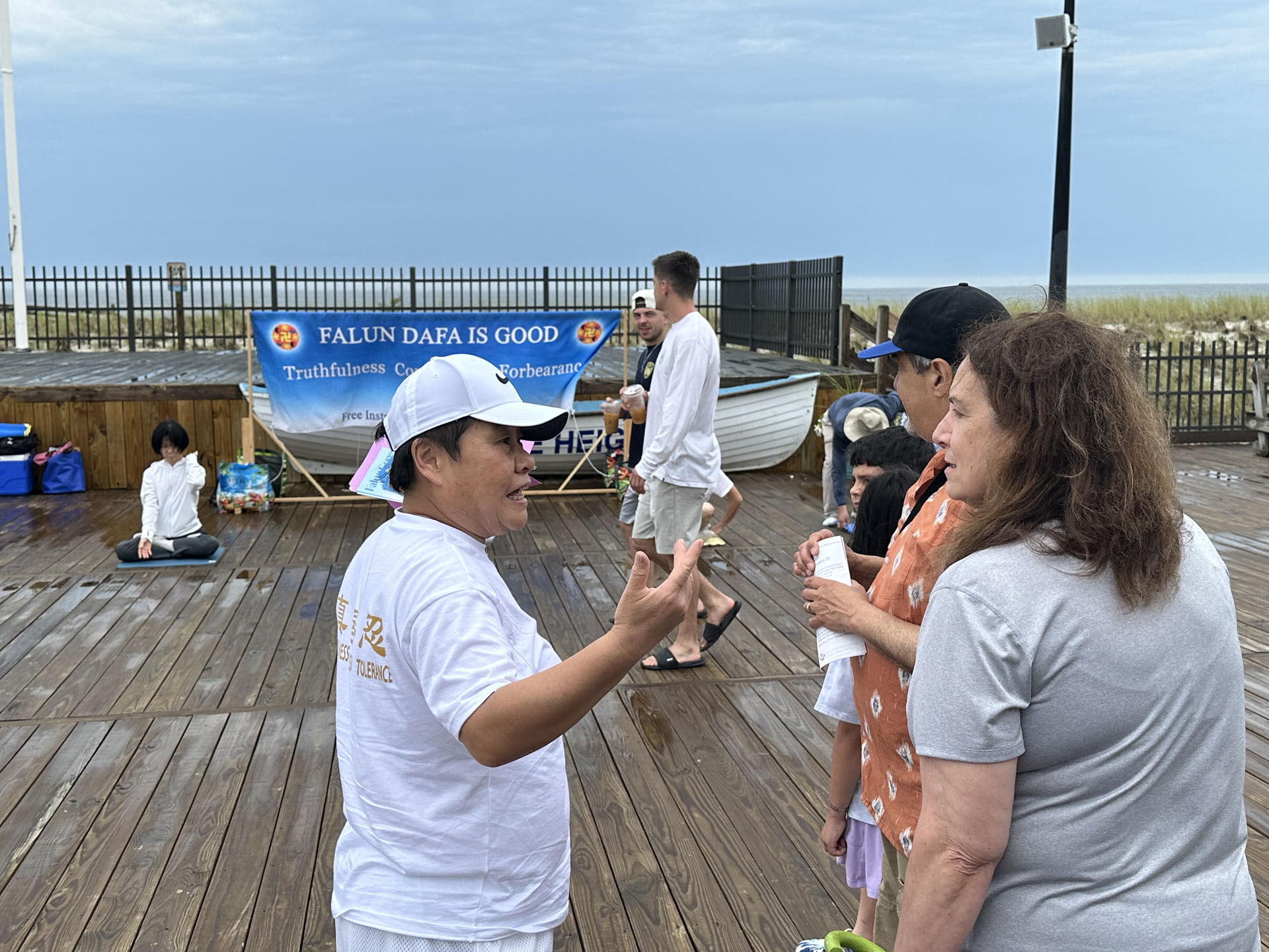 【明慧网二零二四年七月四日】二零二四年六月三十日,美国新泽西州部分法轮功学员今夏首次来到海滨高地镇(Seaside Heights),向众多游客介绍法轮功(也称法轮大法),并揭露中共长期迫害法轮功的真相。法轮功学员祥和的炼功场面,成了海滨步行街上一道与众不同的难得风景线。游客们纷纷主动要求学功,或在反迫害签名表中签名。