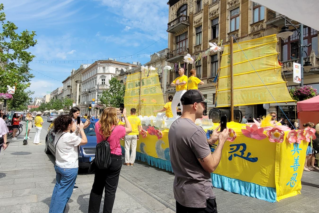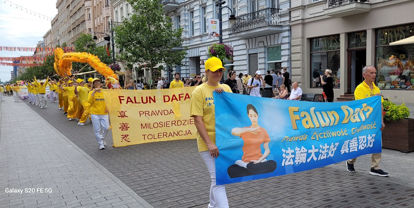 【明慧网二零二四年八月一日】二零二四年七月二十七日,波兰中部城市罗兹市迎来601周年市庆,捷克、德国与波兰法轮功学员共同组成壮观的游行队伍参加了庆祝活动,受到沿街民众的热烈欢迎。大游行的图片即出现在当地多家媒体的封面报道之中,很多人说:“第一次看见这样的游行队伍,太震撼人心了。”