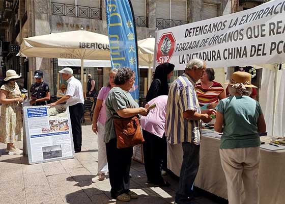 八月三日,西班牙法轮功学员来到莱里达市中心举办反迫害征签活动,旨在揭露中共对法轮功的迫害和活摘器官的暴行。