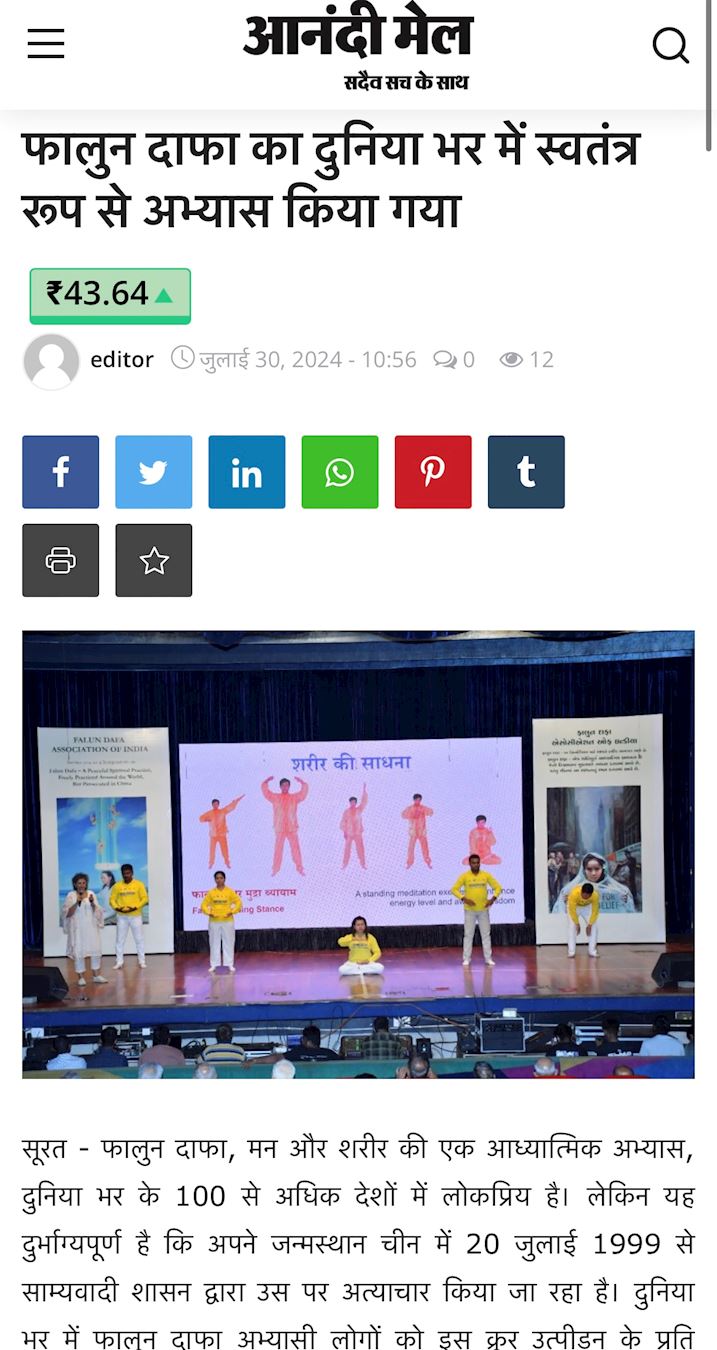 古吉拉特邦的主要报纸桑德什新闻(Sandesh News)于二零二四年七月二十八日发表文章,介绍法轮功学员举办的研讨会。