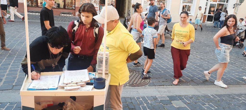 来自塞维林堡(Turnu Severin)的两名高中生卡罗尔(Carol)和路易莎(Luiza)看到传单后,立刻签了名。得知请愿书是要求停止强摘法轮功学员器官时,他们惊呼:“他们(中共)为了获取器官杀害(法轮功学员)!这太可怕了!”