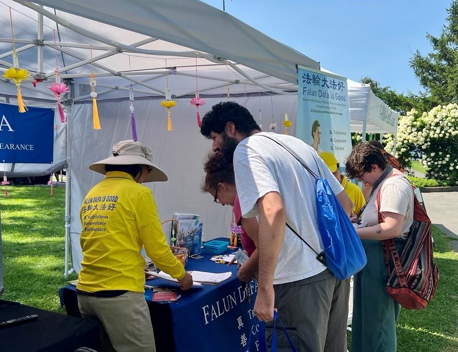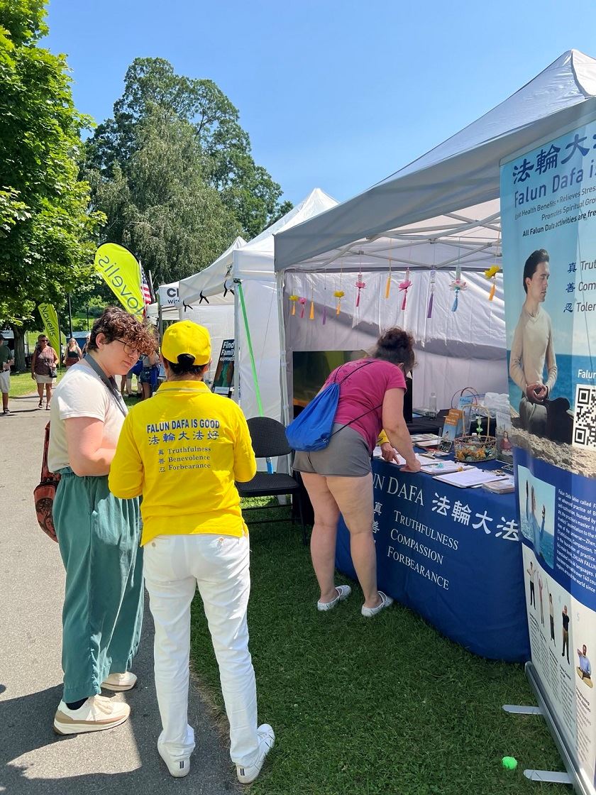 纽约州的法轮功学员也参加了海港节,在真相展位前,游客们纷纷驻足,饶有兴趣地观看教功视频,阅读学员递上的真相资料。善良的人们得知中共残酷迫害法轮大法并活摘器官的暴行后,纷纷在请愿书上签名,要求美国参议院尽快通过法轮功保护法案。以下是几则感人的小故事。